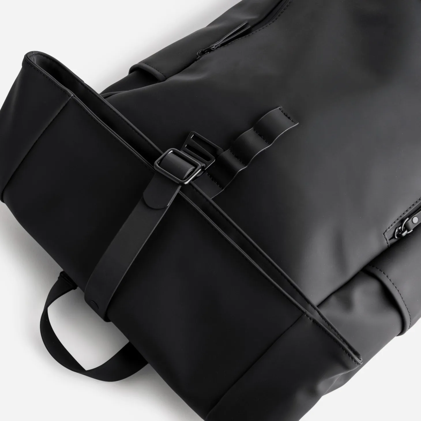 Maxi volume validé pour ce sac à dos, pensé pour les vies des nomades urbains. En matière synthétique lisse et mate, il surprend par son toucher gomme. Très fonctionnel, les poches se multiplient autour d’un compartiment principal, pour gagner en optimisation des rangements : poche intérieure zippée et filet à l’intérieur, poches zippées et non zippées à l’extérieur, compartiment renforcé au dos, pour y glisser un ordi. Un modèle très actuel, décliné en coloris noir, pour s’adapter facilement à votre quotidien.