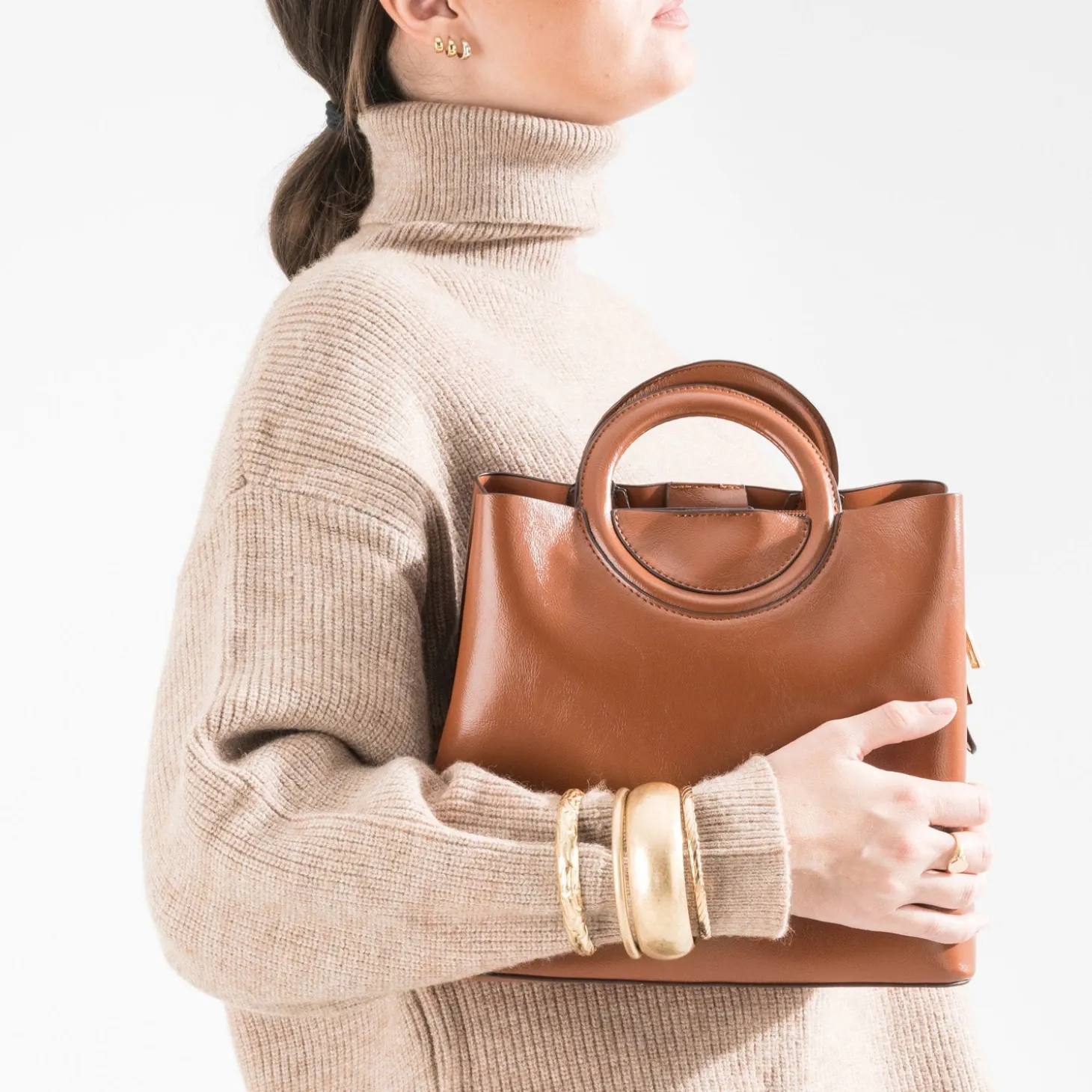 Sac à main camel trois compartiments