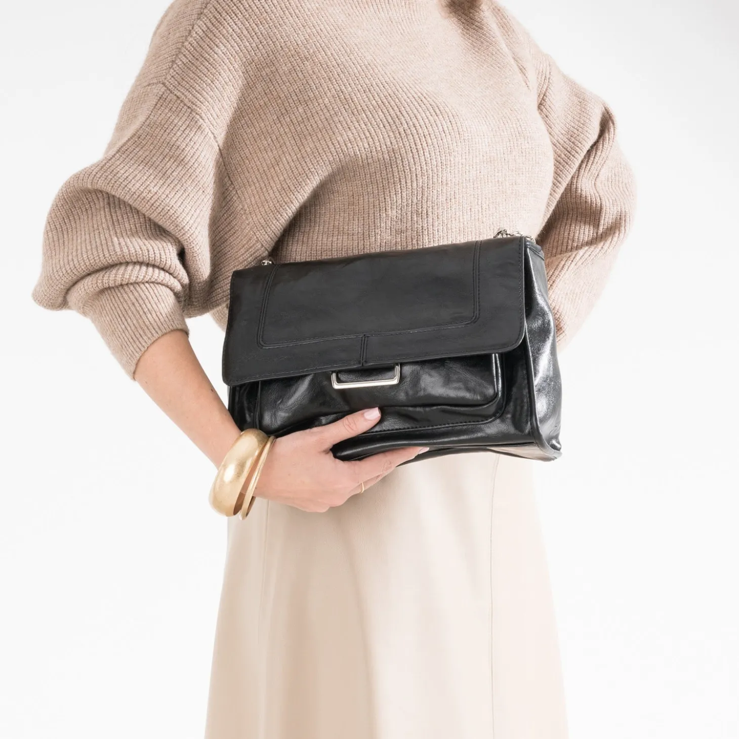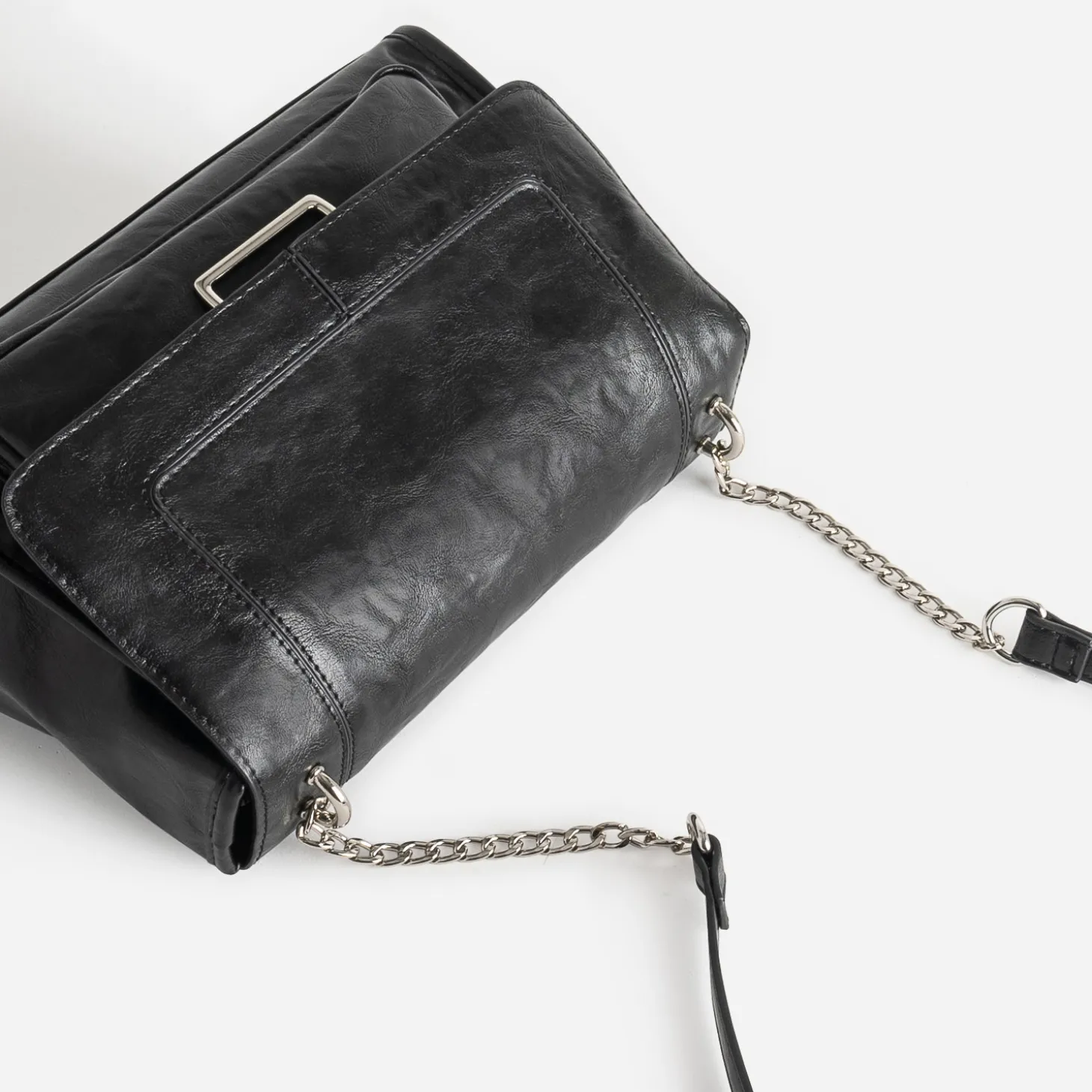 Effet patiné et finition glacée pour ce sac à main noir pour femme. Sa matière synthétique séduit par son incroyable souplesse et sa douceur au toucher et les métalleries argentées apportent une touche rock maîtrisée. A l’intérieur, le compartiment principal est doté de 2 poches internes, dont 1 zippée, et d’1 poche externe. Son format, ni trop petit ni trop grand, est idéal pour le quotidien. Un modèle qui s’adapte à votre uniforme du moment : blazer, jean slim enduit, boots à talon.