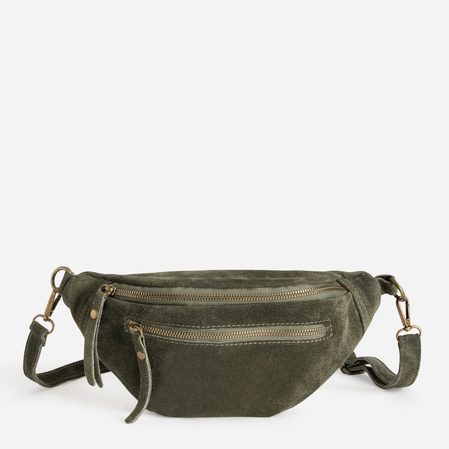 Le sac banane a fait ses preuves. Mode et fonctionnel, il est revisité en cuir velours, sublimé par un coloris kaki. Le compartiment principal présente une poche interne zippée, et une poche externe zippée, pensée pour accueillir clés ou cartes plus facilement. La bandoulière est réglable, pour s’ajuster sur le buste, et amovible, pour être échangée pour un modèle plus ethnique par exemple. Un accessoire qui s’accorde avec toutes les tenues et tous les styles.