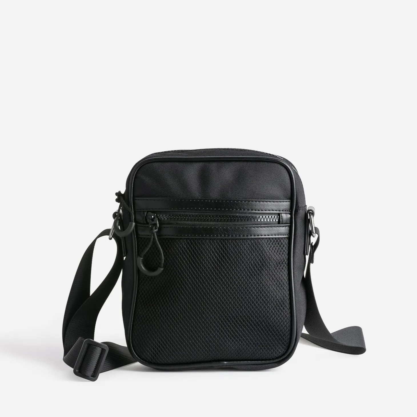 Jamais trop de poches ! Portefeuille, téléphone, clés, cartes, le sac bandoulière est votre allié pour vous alléger ! Choisissez-le en textile noir, avec bandoulière réglable, et multiples poches, 2 internes, dont 1 zippée et 2 externes, dont 1 zippée. L’empiècement de résille mesh rappelle les équipements de sport.