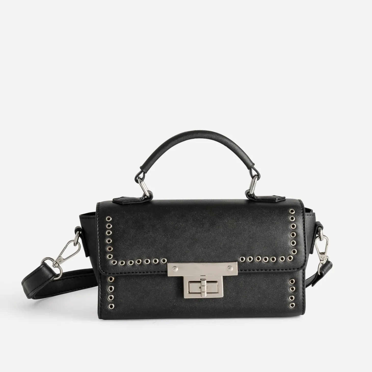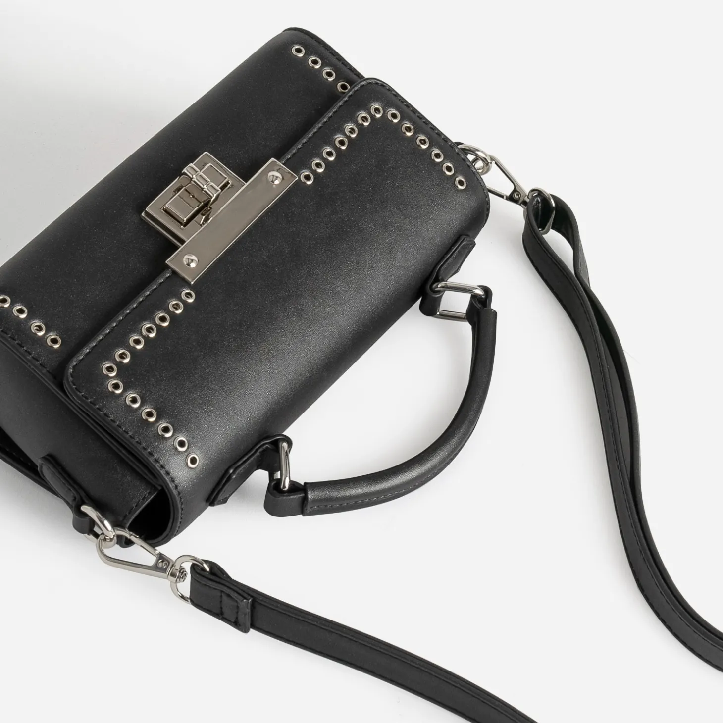 Sac bandoulière noir métalleries argentées
