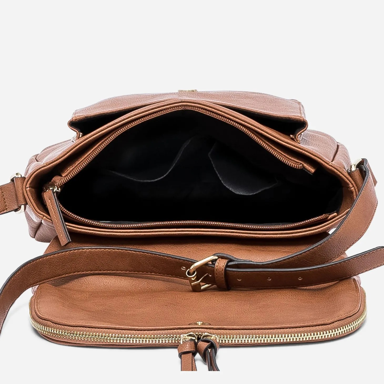 Fermeture par aimant et zip. 1 compartiment avec 3 poches internes dont 1 zippée. 3 poches externes dont 2 zippées. Bandoulière réglable non amovible.