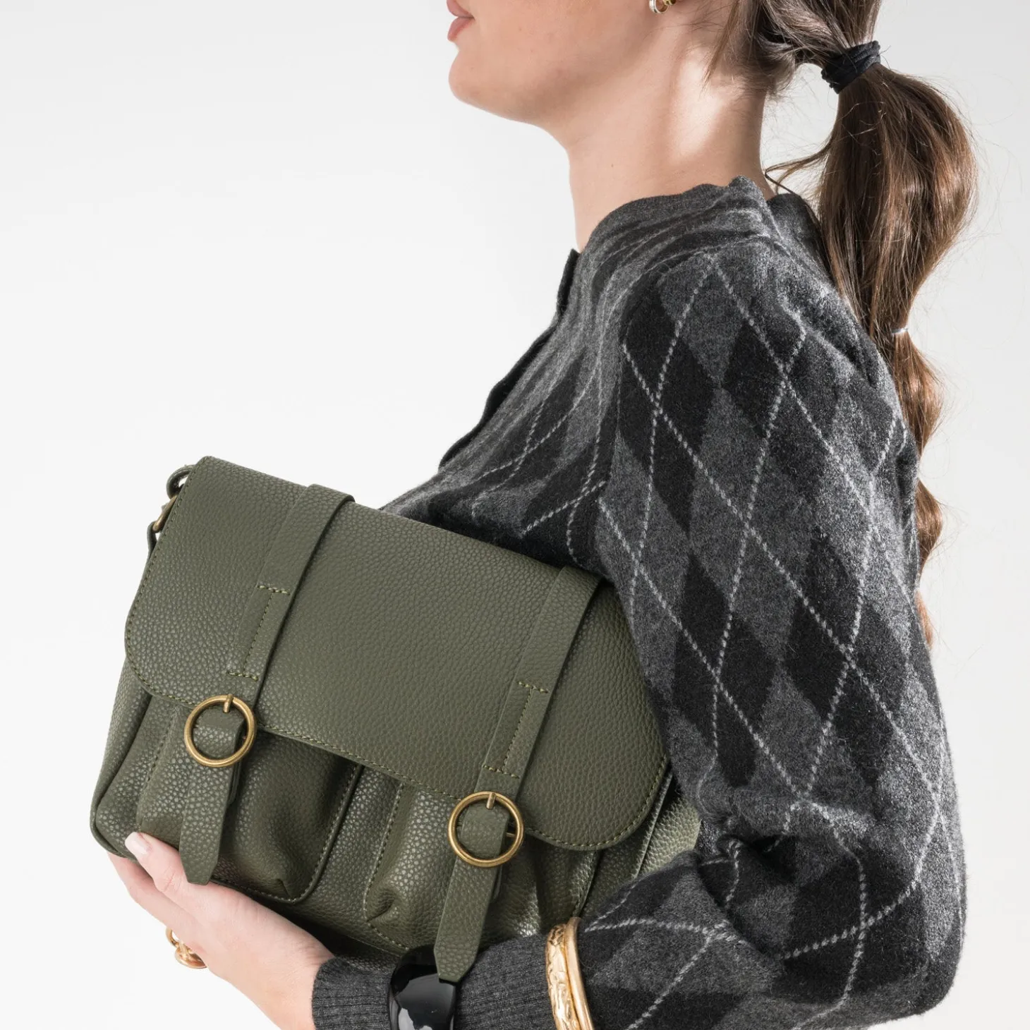 Parmi les premiers critères, lorsqu’on choisit un nouveau sac à main, on note la fonctionnalité, la qualité, le style. Avec ses deux poches externes, ses deux poches internes, sa fermeture par zip sous rabat aimanté et sa bandoulière réglable, cette besace pour femme facilite clairement le quotidien. En matière synthétique grainée, elle s’offre un coloris vert kaki, pile dans la tendance. Porté sur l’épaule ou croisé sur le buste, ce modèle frise vraiment la perfection.