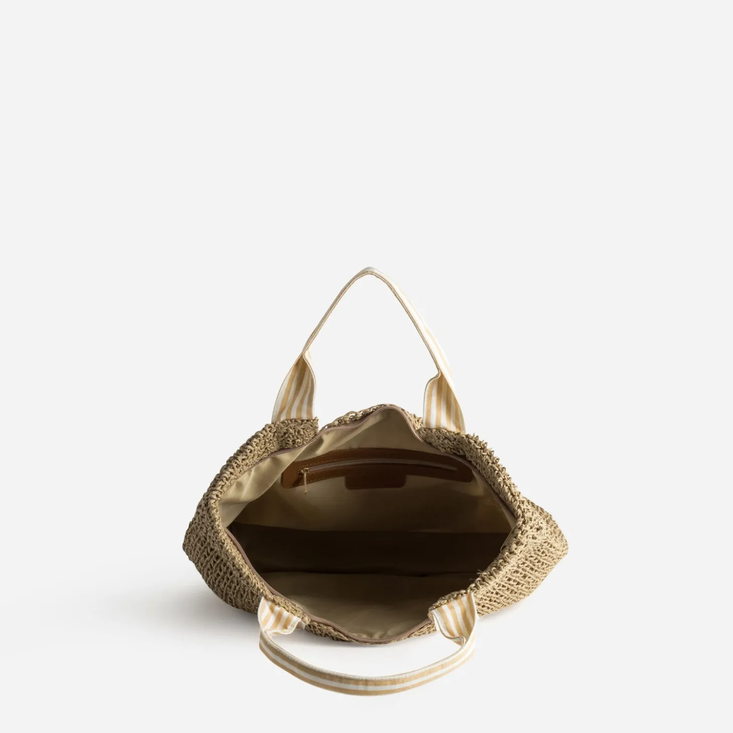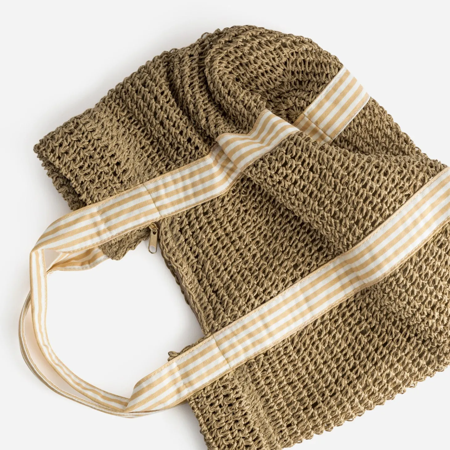 Sac cabas beige paille papier anses rayées