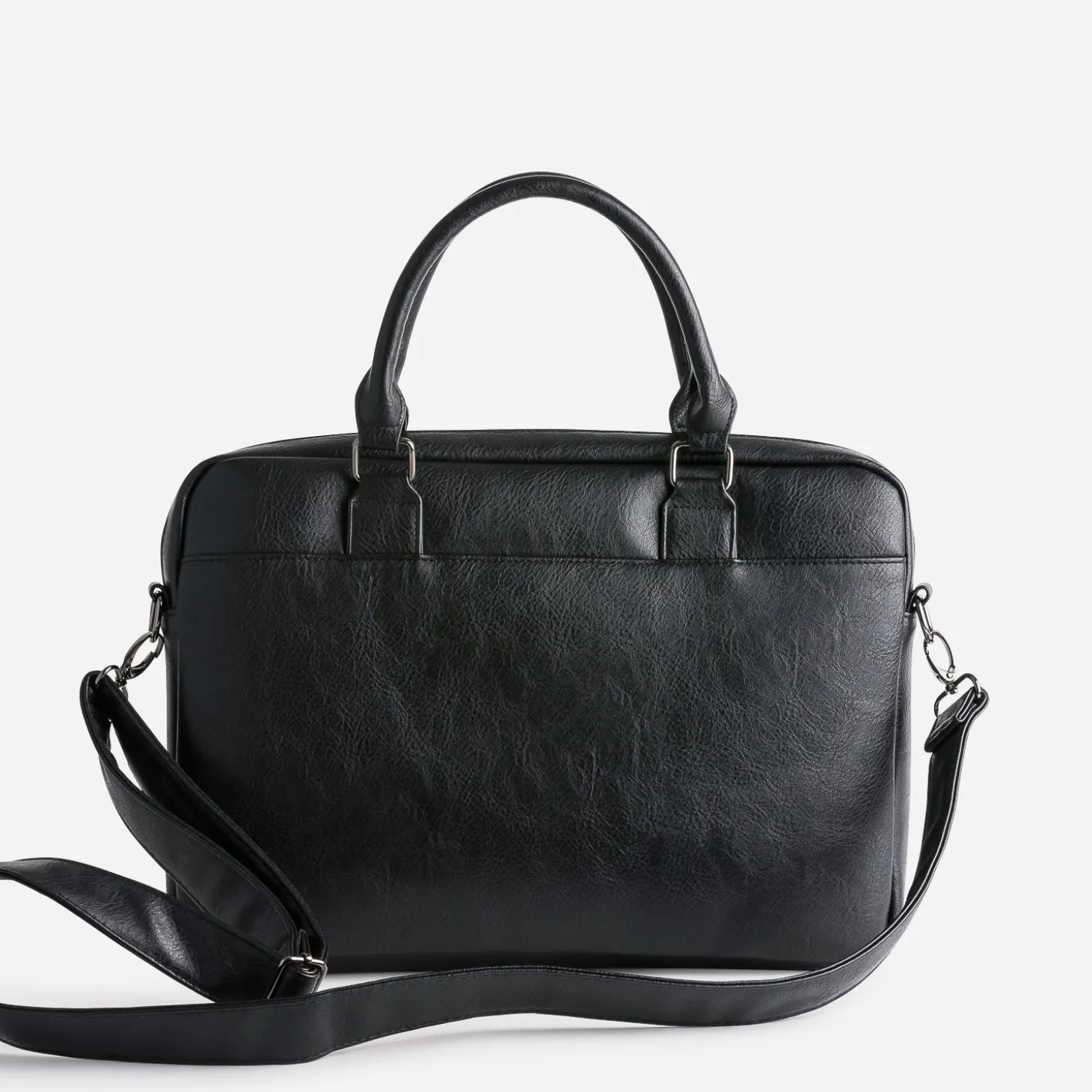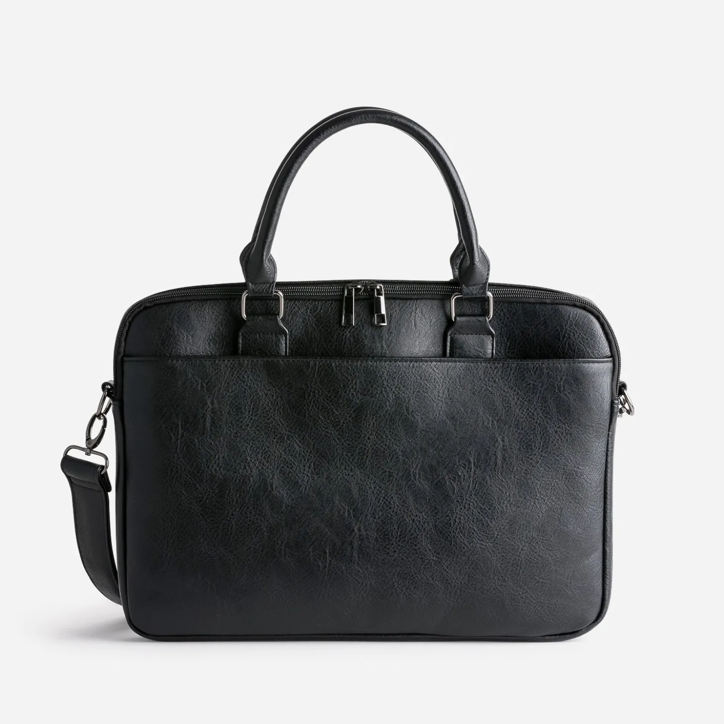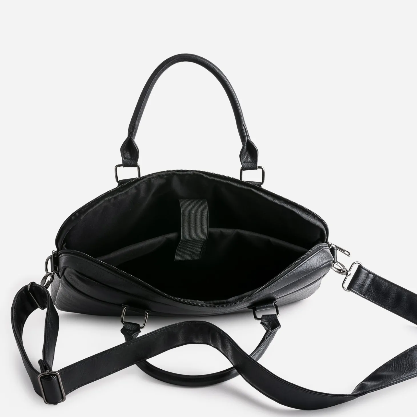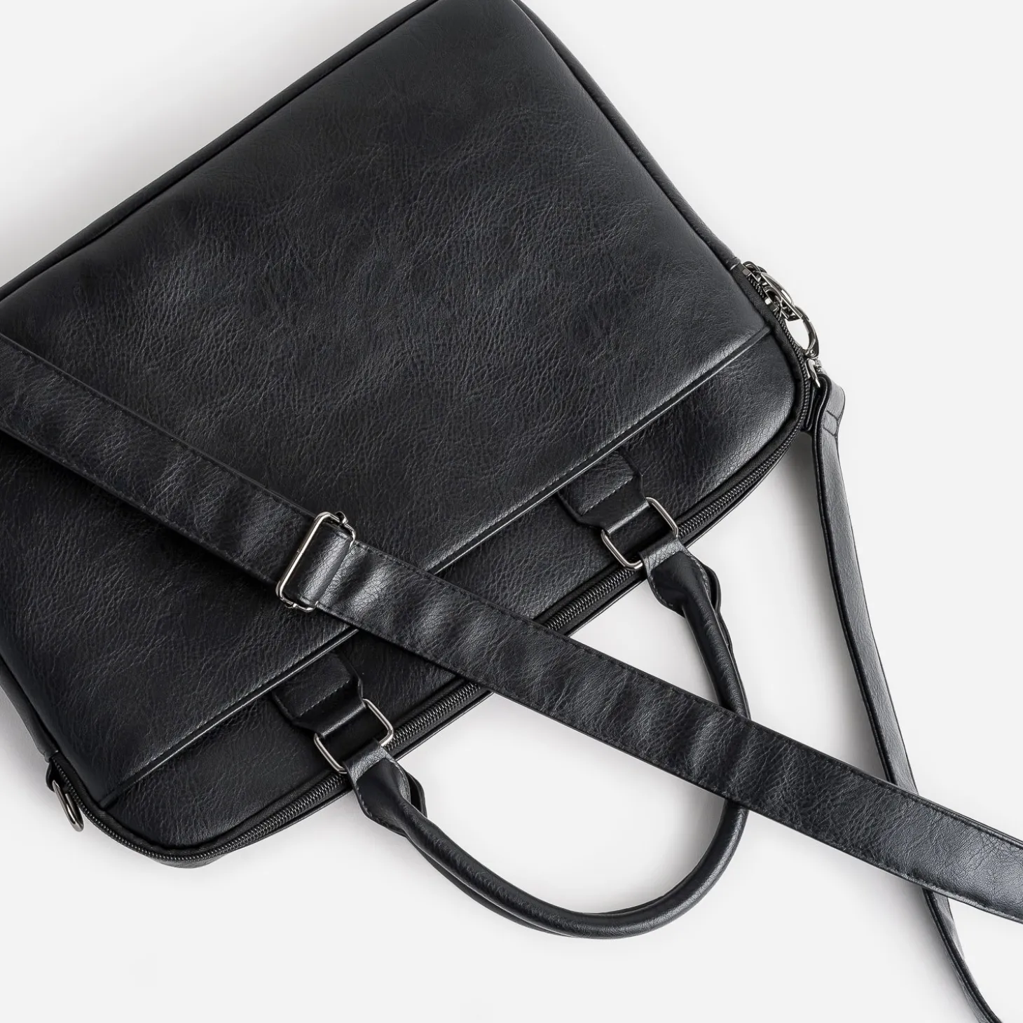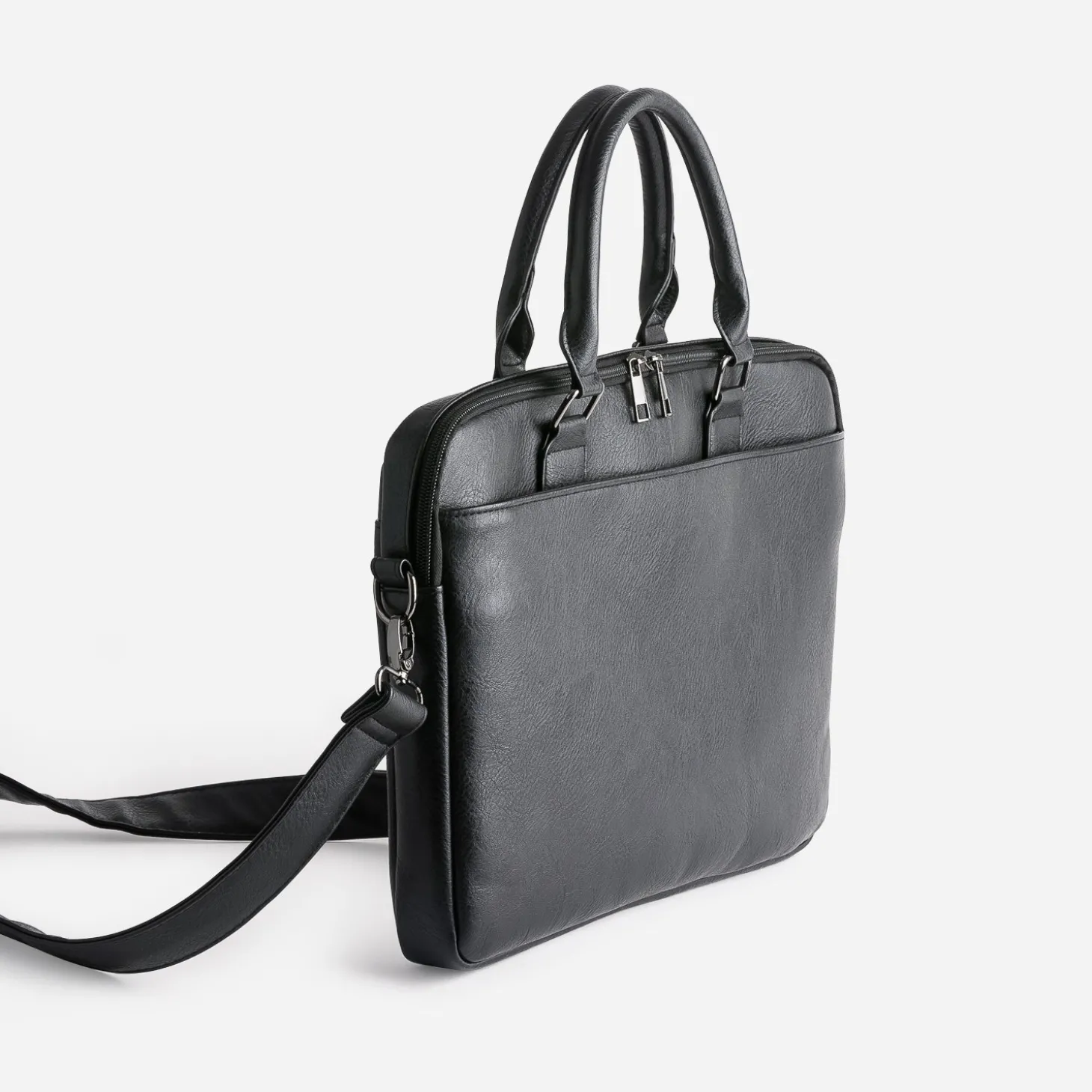 Vous cherchez un accessoire de maroquinerie adapté au transport de votre ordi et de vos documents professionnels ? Essayez cette sacoche, spécialement conçue pour ça, avec, à l’intérieur, un compartiment sécurité. En matière synthétique, elle se décline en coloris noir mat.