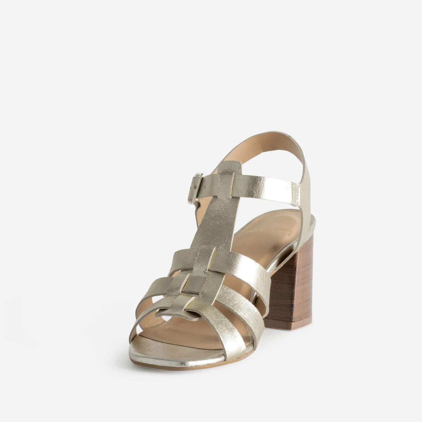 Adoptez le look bohème chic avec cette sandale dorée à talon esprit spartiate. Ses détails raffinés, multi-brides et talon flare lamellé effet bois, et sa couleur lumineuse en font la pièce parfaite pour les prochaines cérémonies. Un modèle d’une élégance évidente, avec une robe bustier vaporeuse et colorée ou, plus quotidien, avec un top fluide et un pantalon droit noir.