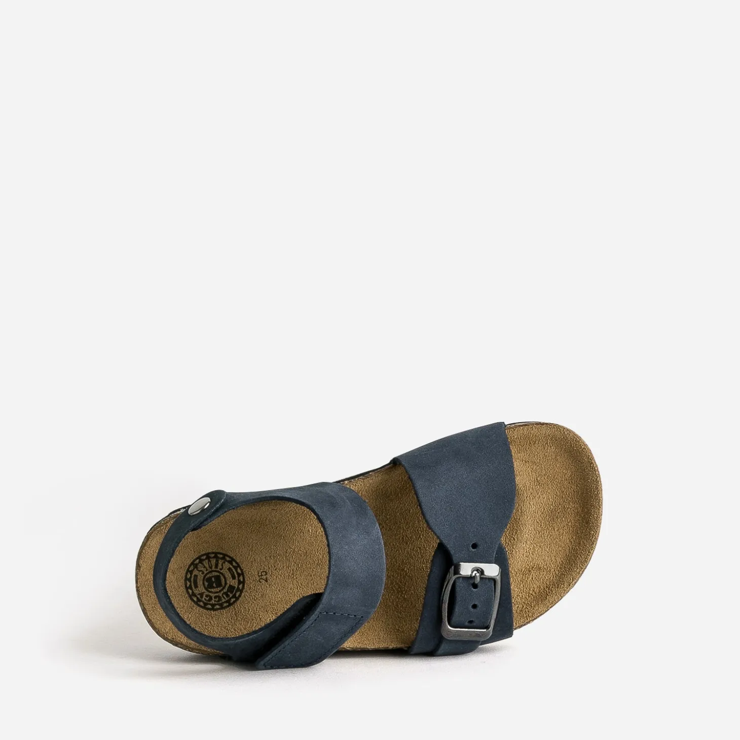 En quête d’une sandale à la fois confortable et jolie, pour votre petit garçon ? Faites-lui essayer ce modèle. En cuir bleu marine, elle est montée sur une semelle anatomique en cuir velours, toute douce et bien emboitante, et présente deux brides ajustables par boucle et scratch pour un maintien parfait du pied. Idéal avec tous ses looks du quotidien, comme pour une cérémonie.
