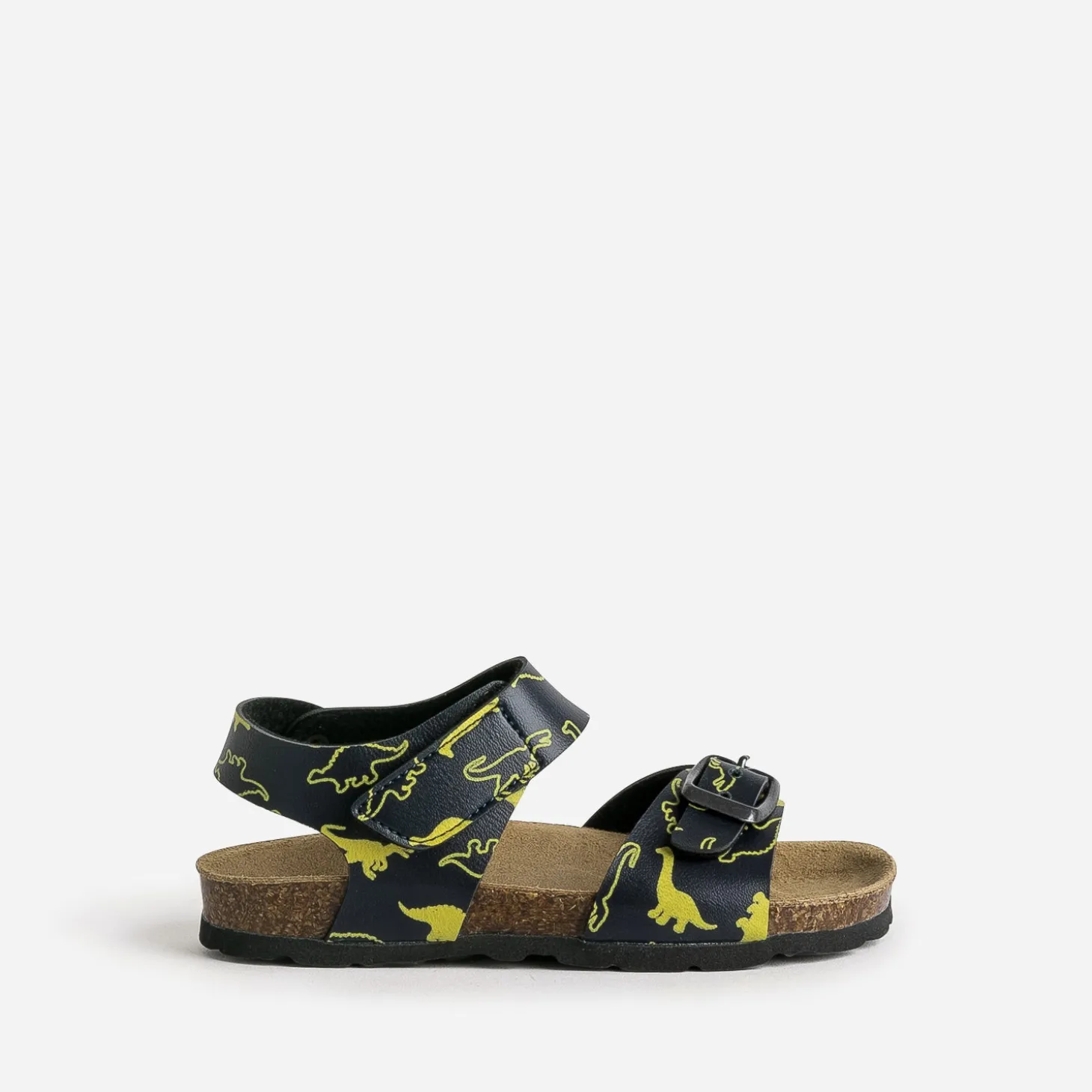 Confortable et toujours stylée, la sandale anatomique a fait ses preuves depuis longtemps. Modernisée par une matière synthétique lisse bleu marine, elle s’anime de motifs dinosaures jaunes. Elle se ferme par un scratch et une boucle, pour faciliter l’autonomie des plus petits et s’ajuster au pied, sans contraintes. Un modèle idéal au quotidien, avec une tenue décontractée dans les tons bleus. Tyrex, diplodocus et autres stégosaures n’ont qu’à bien se tenir !