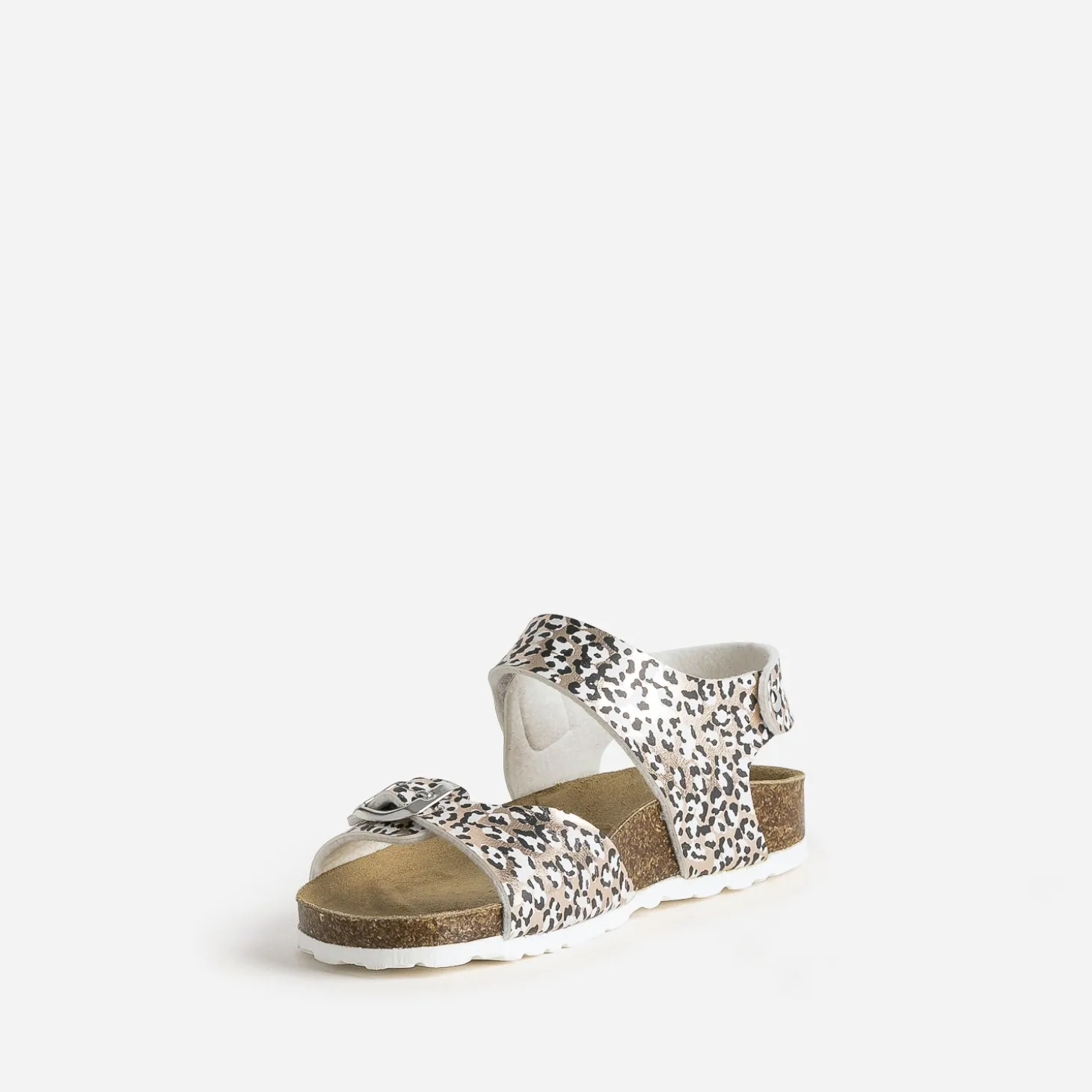 Parce qu’elle est montée sur une semelle anatomique en cuir velours ultra doux, cette sandale pour fille propose une nouvelle définition du confort. Les brides, en matière synthétique lisse, invitent un motif léopard très tendance, sur fond rose cuivré, et se ferment par boucle et scratch, pour un ajustement parfait. Total looks black, blanc ou beige, s’imposent en alliés tout l’été.
