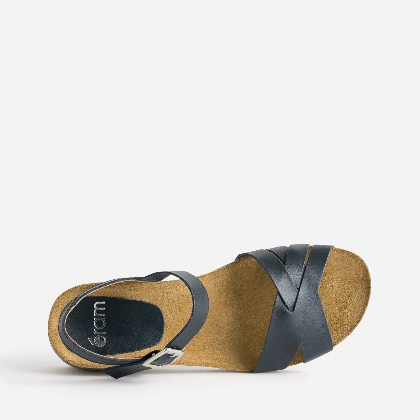 Un talon légèrement compensé, une première toute douce en cuir velours, des brides en cuir. Cette sandale pour femme ne veut qu’une chose, votre confort. Elle se décline en coloris marine, pour s’accorder à un maximum de tenues, à choisir de préférence, décontractées.