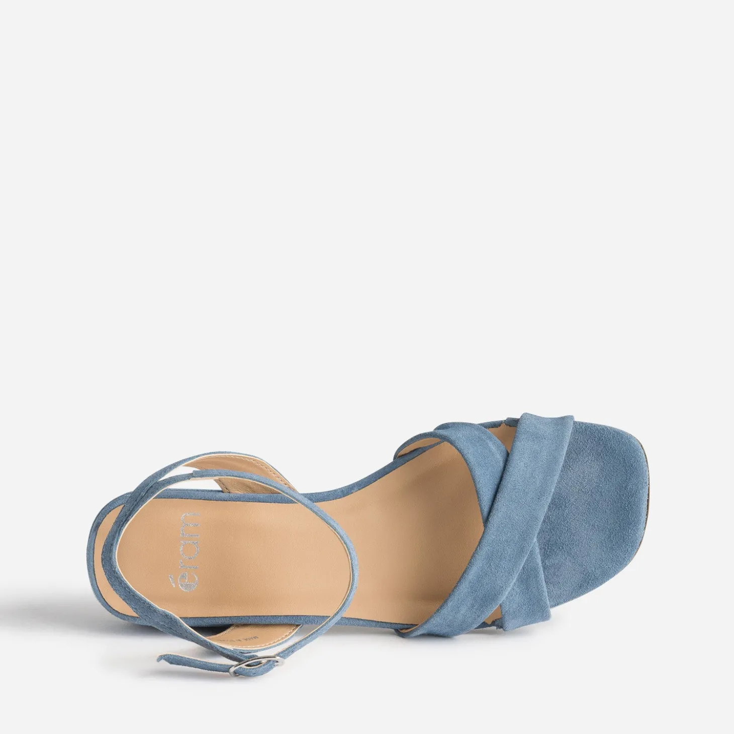 Avec ses brides croisées sur le dessus du pied, son cuir velours, son coloris bleu et son petit talon décroché, cette sandale pour femme est un modèle essentiel du shoesing estival. A privilégier avec robes et jupes vaporeuses.