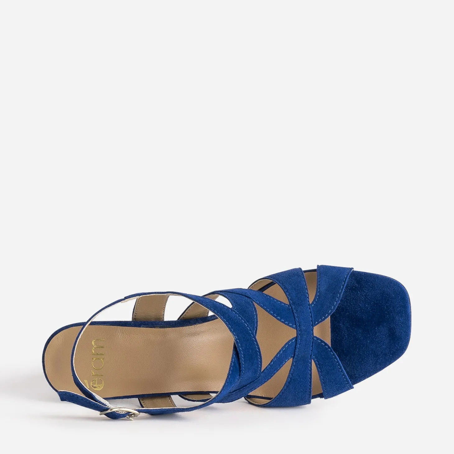 Une chose est sûre : avec ce bleu-là, ce bleu roi, vous ne passerez pas inaperçu. Et avec un talon haut de 8 cm non plus. Chaussez cette sandale pour femme. Confectionnée en cuir velours, elle présente une position de brides étudiée pour sublimer le pied. Préférez la avec une robe chemise longueur midi, à imprimé graphique.