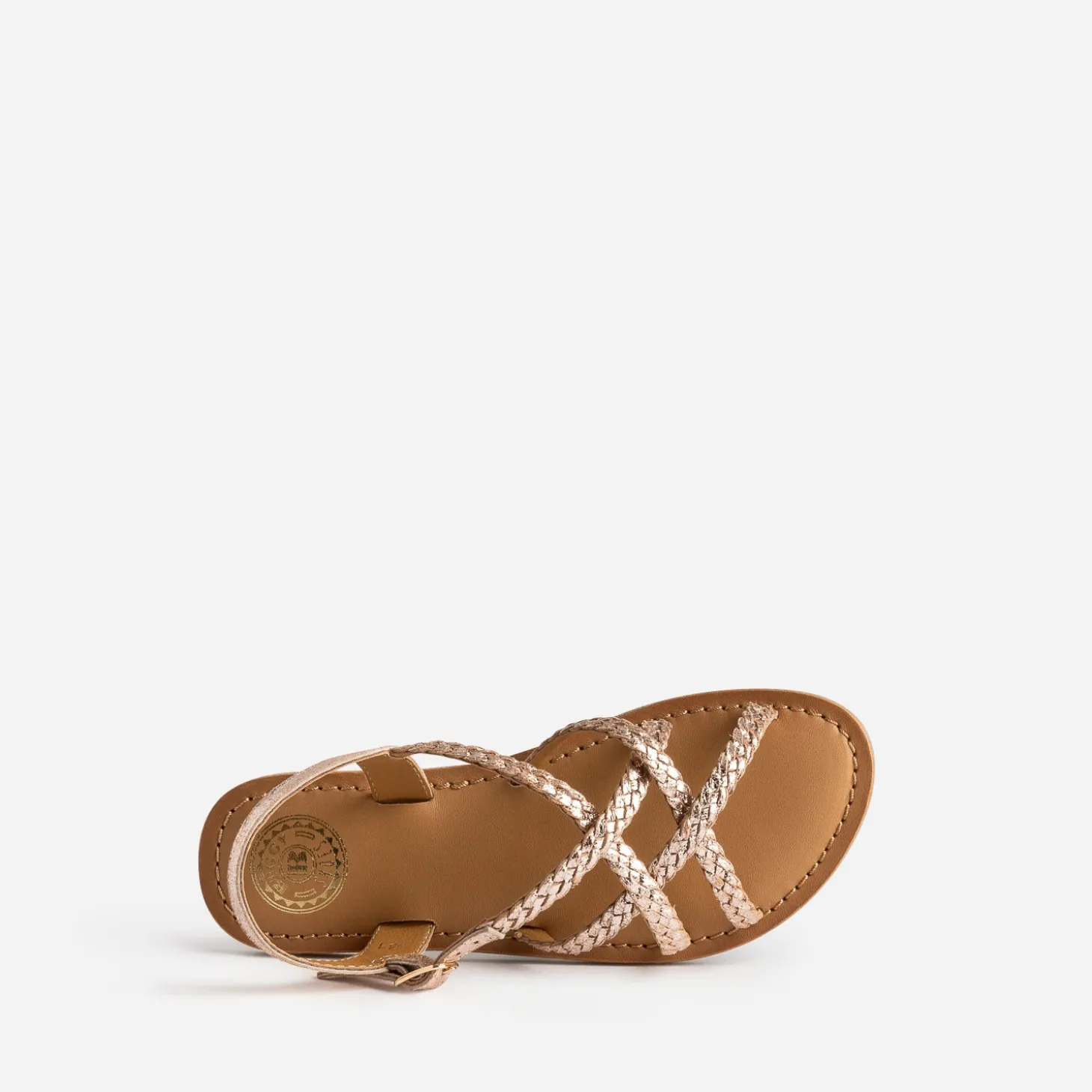 Coloris rose cuivré, finition métallisée, jeu de tresse maîtrisé : cette sandale plate pour fille est une valeur sûre, qui s’accorde à un maximum de looks de la saison. Avec une robe blanche pour une cérémonie, avec une combi-short en jean, avec une blouse et un pantalon chino rose fuchsia.