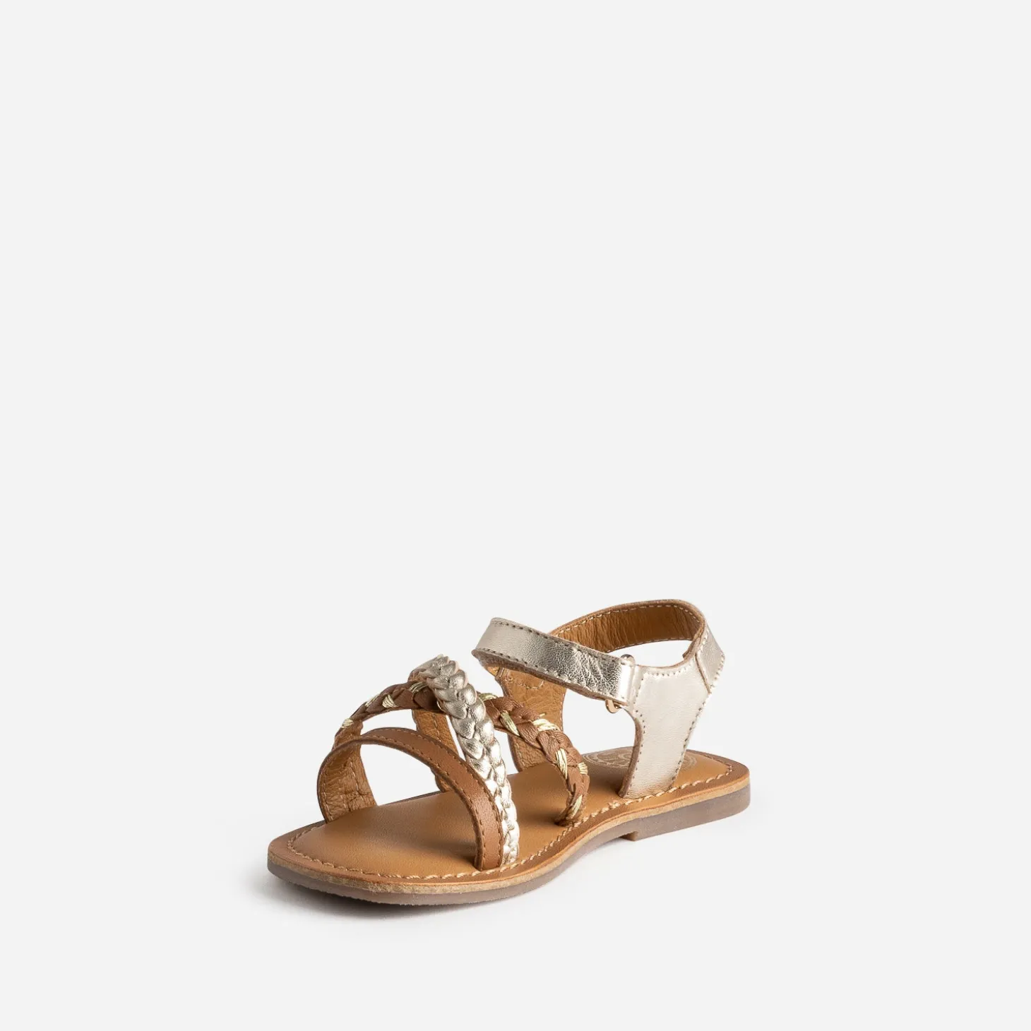Camel et doré, c’est le combo parfait pour des sandales d’été. Brides tressées croisées sur le dessus du pied, bride à scratch autour de la cheville, elle mixe confort et style, avec juste le chic qu’il faut.