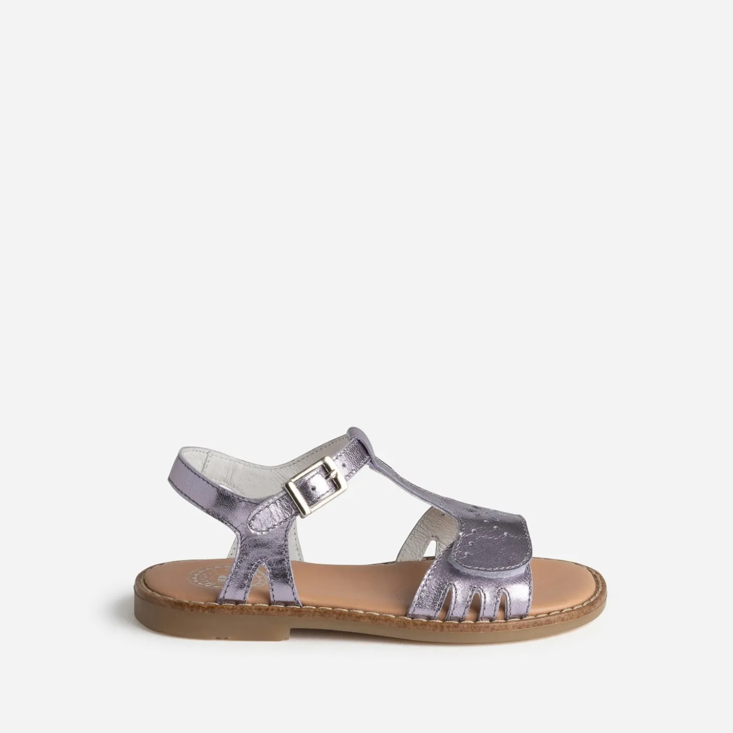 Une couleur parme au top des tendances, un cuir de qualité avec finition métallisée, qui brille à chaque pas. Cette sandale pour petite fille est un véritable booster de bonne humeur. Le pied est maintenu par une large bride à scratch sur le dessus, et une petite bride à boucle, autour de la cheville. Un modèle casual, à associer avec des teintes pastel, vert amande, jaune pâle, bleu layette.