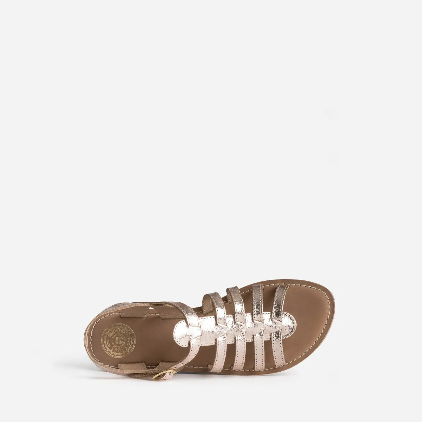 Cette sandale pour junior fille séduit par son jeu de multi brides. En cuir froissé métallisé, elle se décline en coloris rose cuivré. Un modèle intemporel, idéal avec toutes ses tenues d’été.
