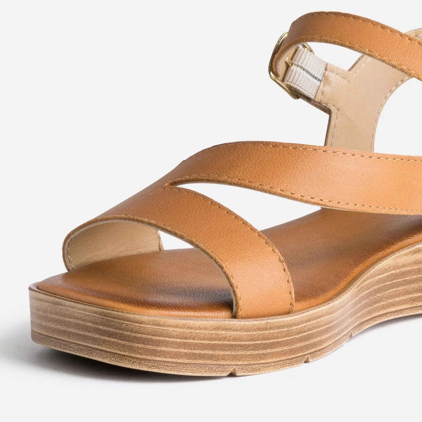 Découpe fantaisie pour les brides en cuir de cette sandale femme. En cuir, elles habillent le pied, montées sur une semelle légèrement compensée, à bout carré. Le coloris camel s’adapte à tous les styles et toutes les couleurs. Un modèle facile à porter, au quotidien.