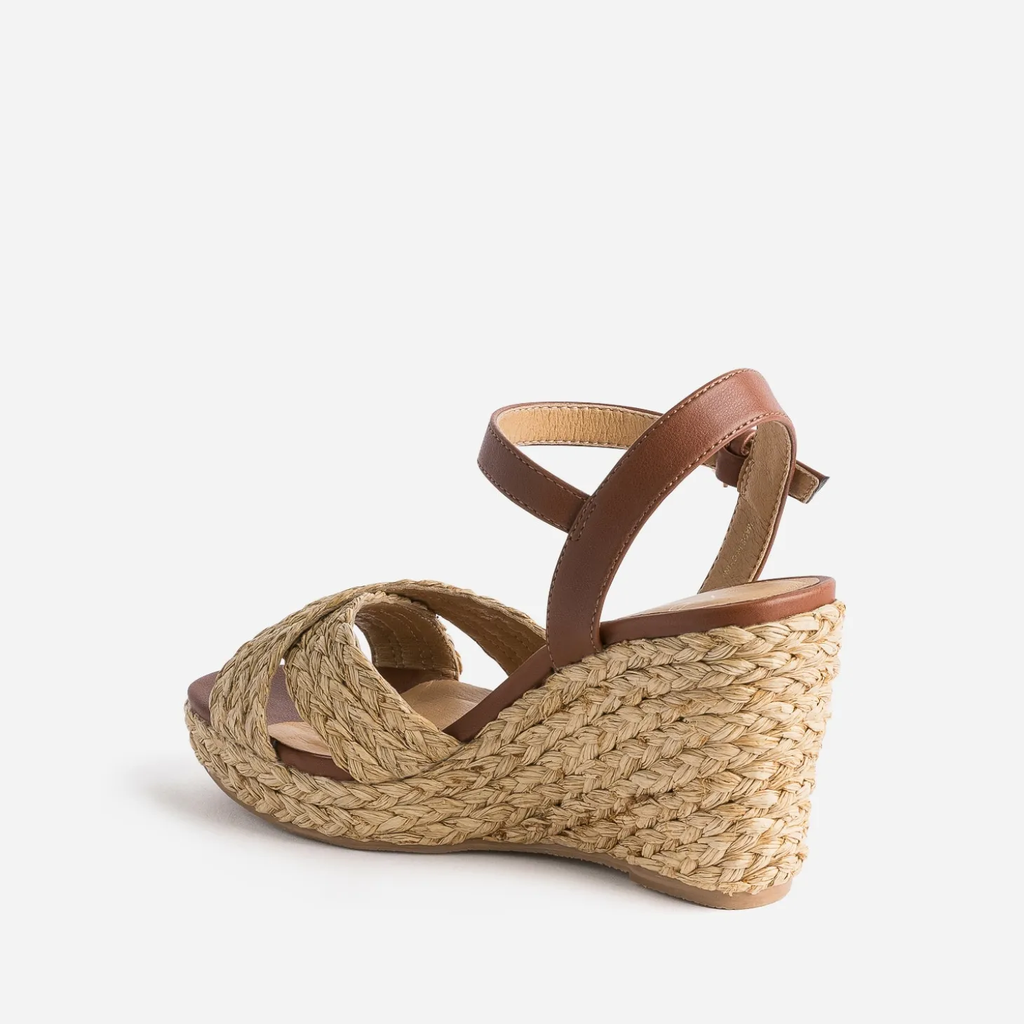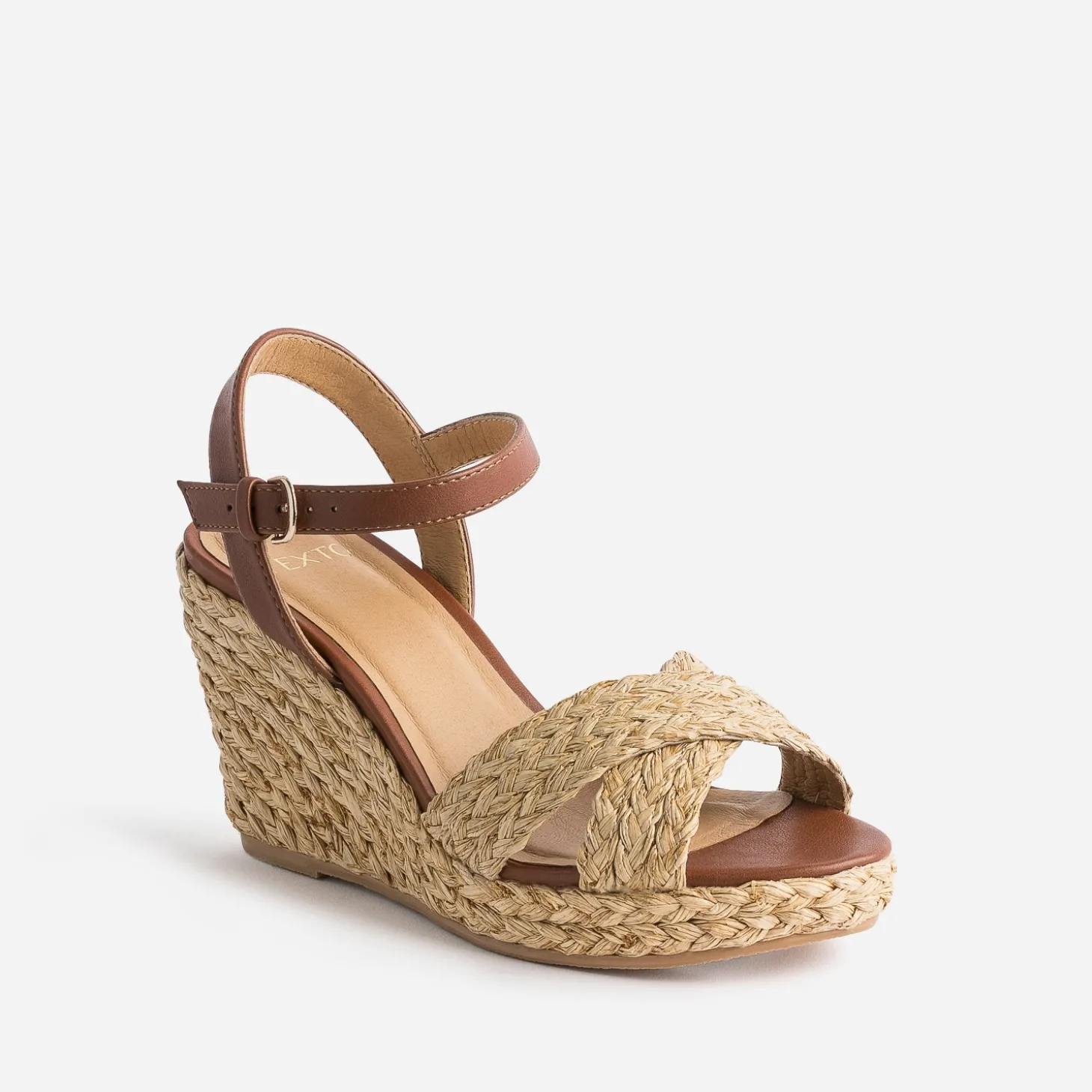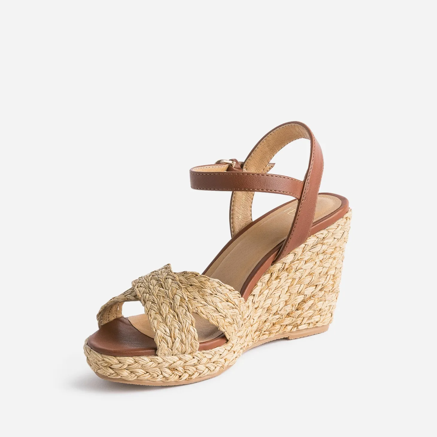 La chaussure de l’été qu’il faut adopter ? La compensée. La tendance à ne pas rater ? L’effet raphia. Essayez cette sandale femme, confectionnée à partir de matières synthétiques qui associent le beige et le came, dans une belle harmonie. Associez-la avec un jean blanc et une blouse fleurie, en journée. Avec une robe longue, en soirée. Avec un joli panier assorti.