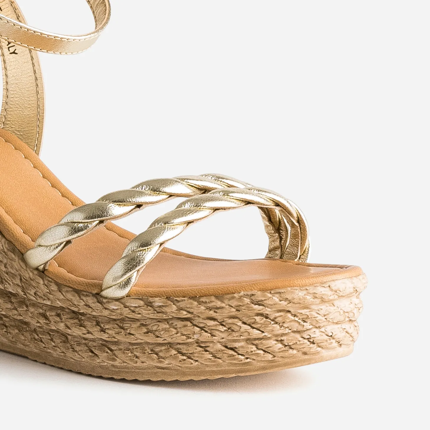 Cette sandale pour femme apporte du chic à toutes les tenues d’été. D’abord par son coloris doré, ensuite par ses brides en cuir, tressées ou lisses, et enfin par son talon compensé imitation corde. Un modèle qui s’adapte très facilement aux cérémonies comme au quotidien.
