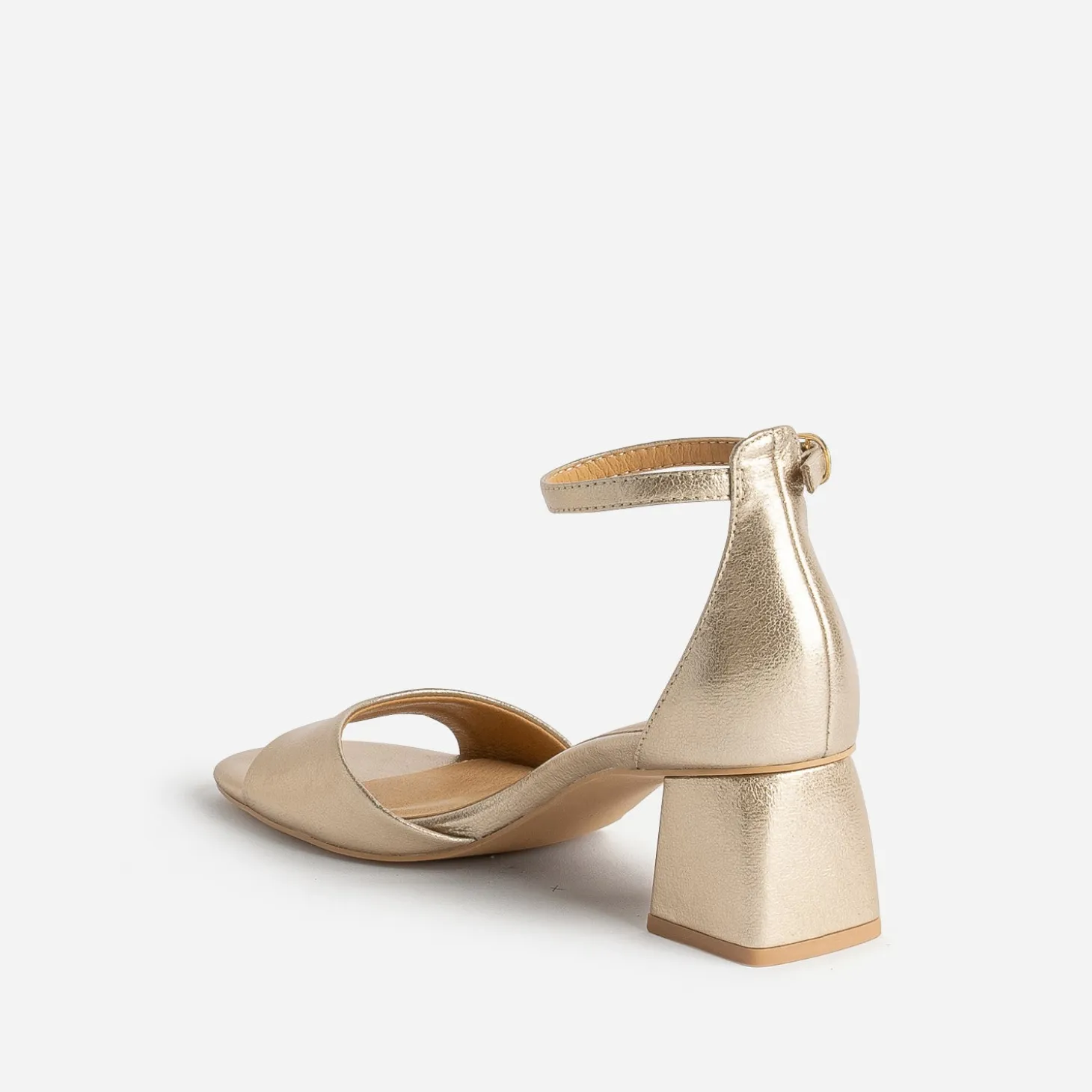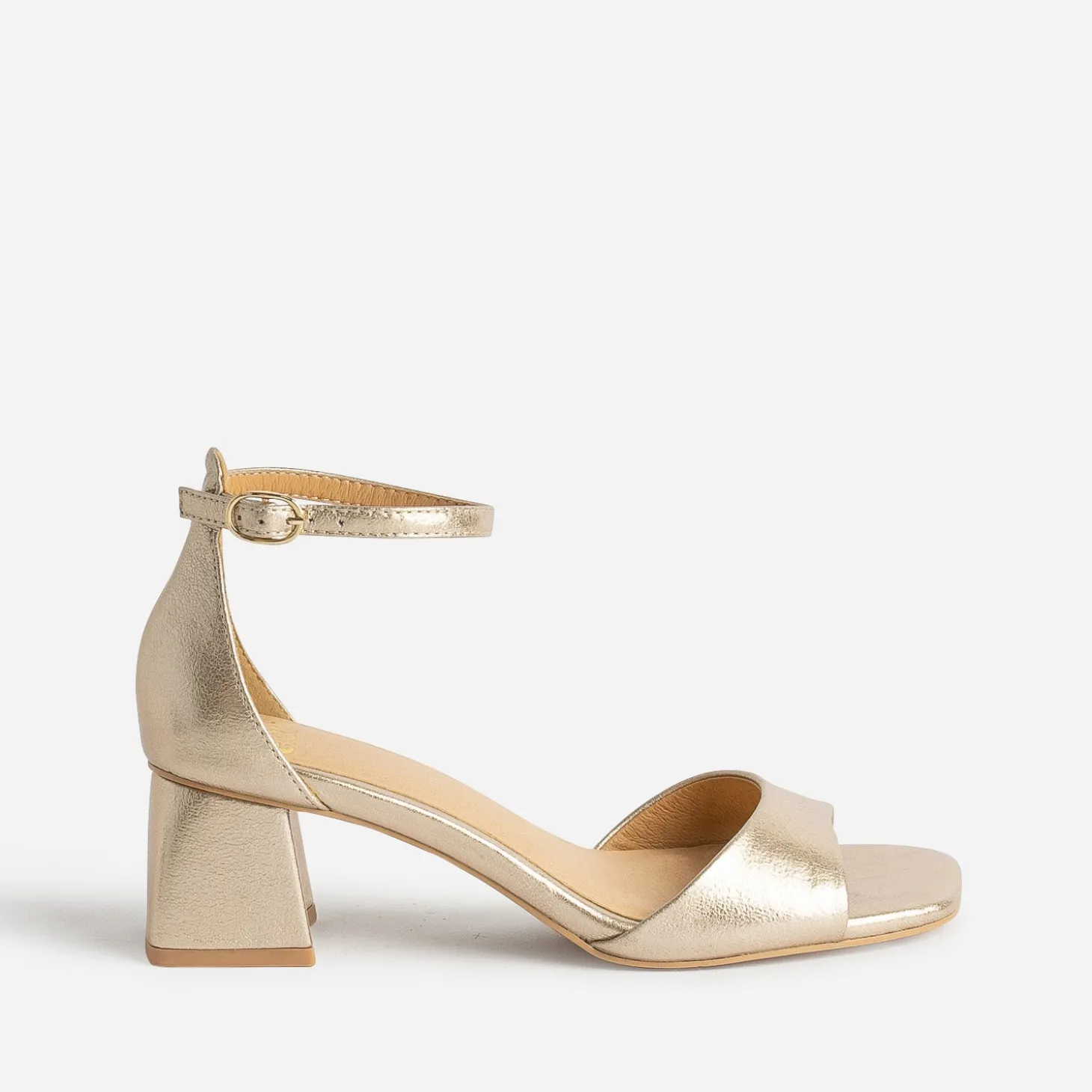 Une sandale dorée, et c’est toute la tenue qui gagne en chic ! Ce modèle femme mise aussi sur le confort : semelle première moussée, talon flare de 5,5 cm et tige montante pour maintenir l’arrière du pied. Le bout carré lui fait gagner en modernité. Avec une robe longue bleu roi ou vert foncé, et vous êtes ready pour la prochaine garden party.n