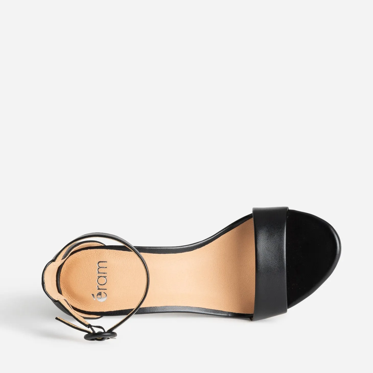 Il n’existe rien de plus féminin que la sandale à talon fin. En matière synthétique, elle habille le pied d’une bride sur le dessus du pied et d’une tige montante sur l’arrière. Montée sur un talon fin de 8 cm, elle se décline en coloris noir pour finaliser toutes les tenues d’été, en journée comme en soirée, avec une élégance évidente.