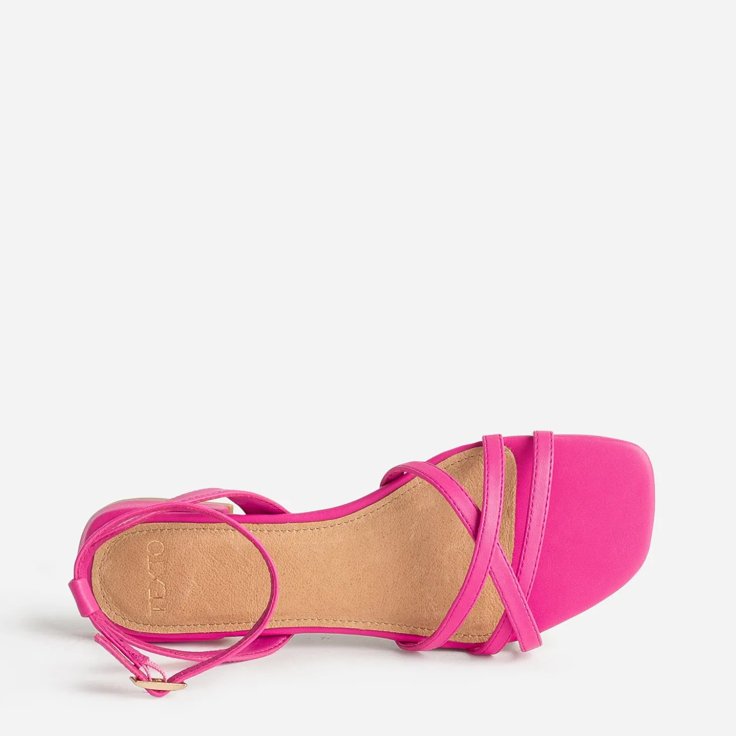 La sandale plate s’offre une nouvelle jeunesse, grâce à un coloris rose fuchsia et une finition mate. Sur le pied, autour de la cheville, les brides se croisent pour un maintien optimal. Avec un look army chic, dans les tons blanc et camel, avec un débardeur, un short en jean et un kimono long, laissez libre cours à vos envies.