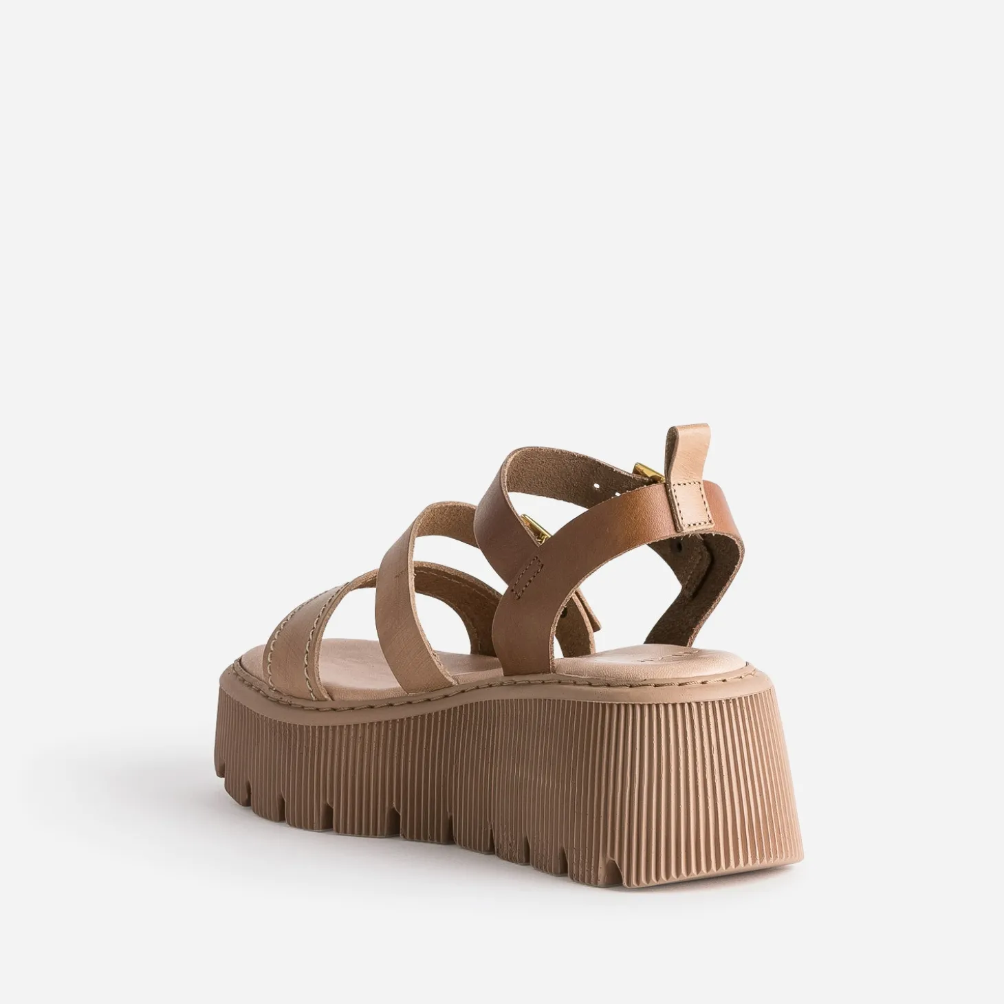 Gagner des centimètres, sans effort ? C’est possible avec cette sandale femme. Montée sur une semelle à plateforme de 3 cm à l’avant et 5,5 cm à l’arrière, elle allonge la silhouette en un clin d’œil. Son atout confort, c’est aussi sa semelle intérieure moussée et ses trois larges brides en cuir dans des nuances de camel. Osez-la en monochrome, avec une tenue toute en fluidité, dans les tons beige, vert foncé ou lilas.