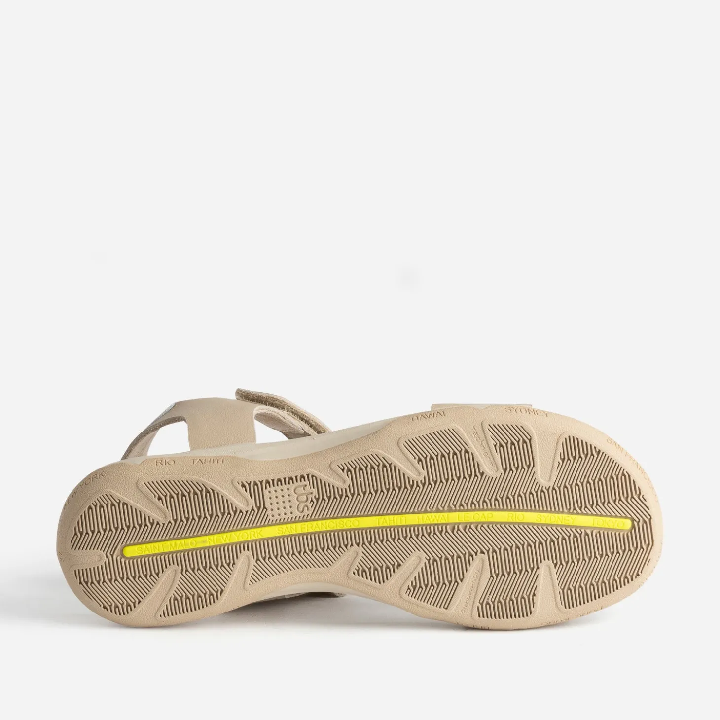 Signée d’un marquage embossé doré ‘Les Marinières’, cette sandale est une invitation à parcourir les ports du monde, de New York à Hawaï, de Saint Malo à Hong Kong. Coloris beige, elle séduit par sa semelle première très douce, ses brides en cuir, son système de scratchs pour s’ajuster parfaitement au pied. Un modèle à réserver avec un look décontracté.