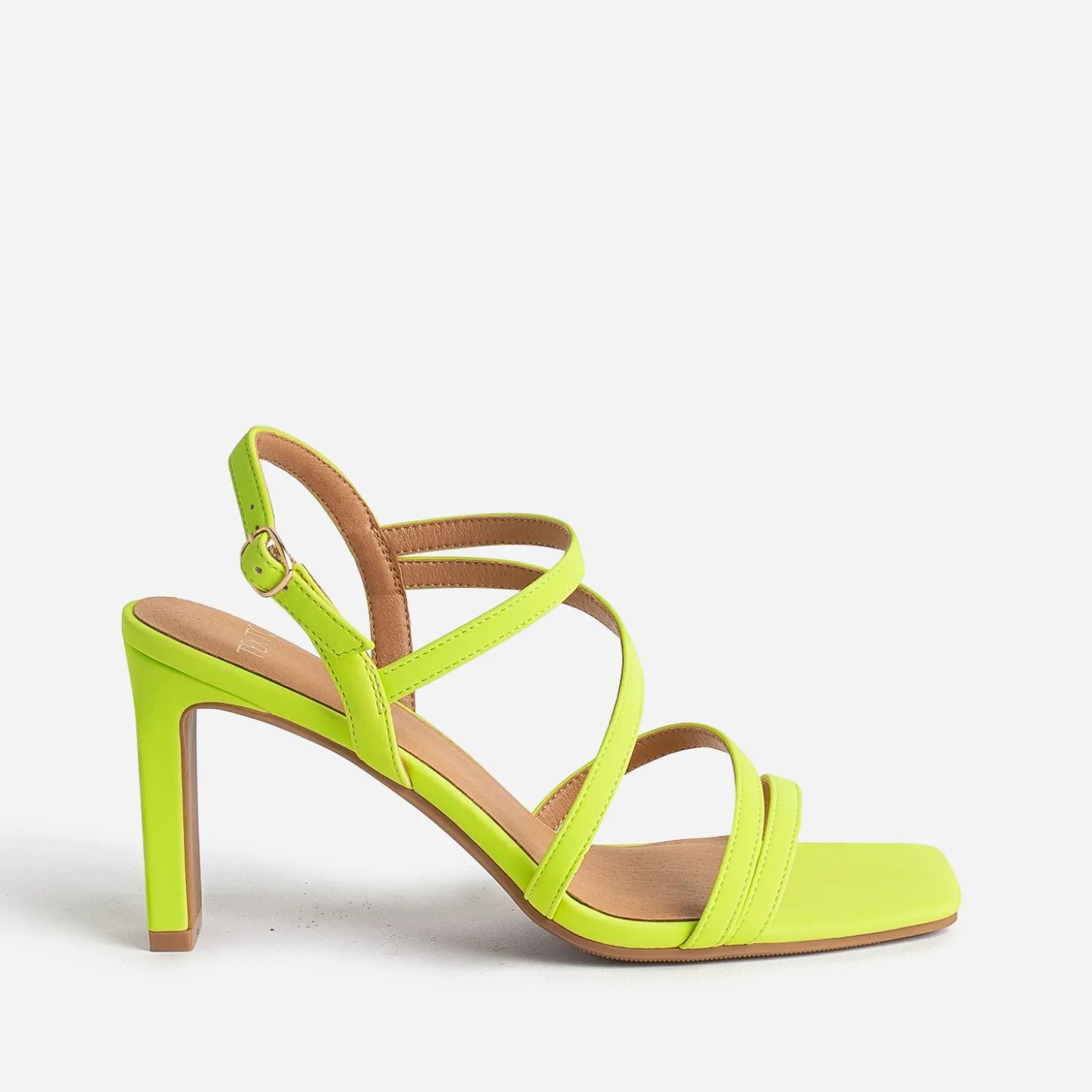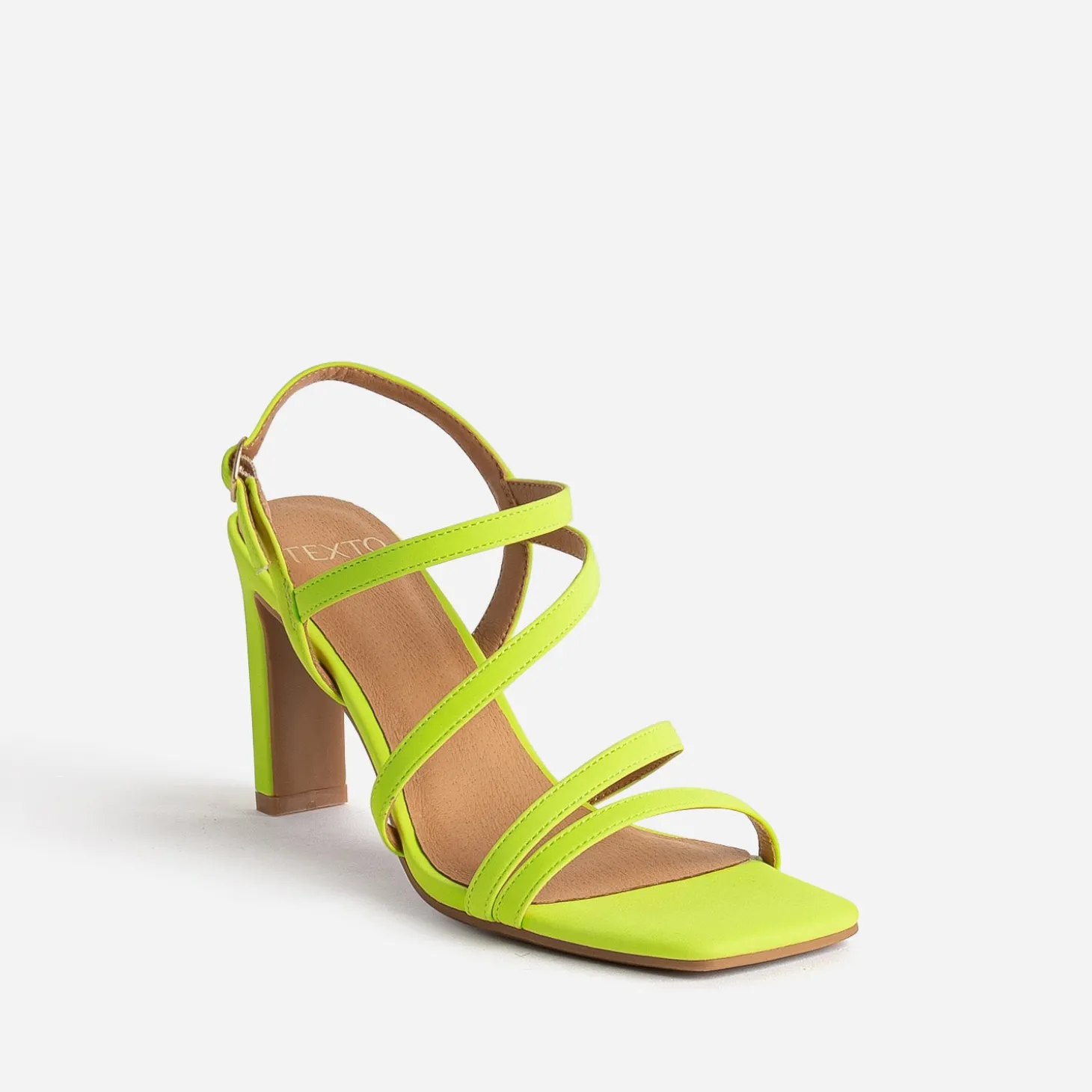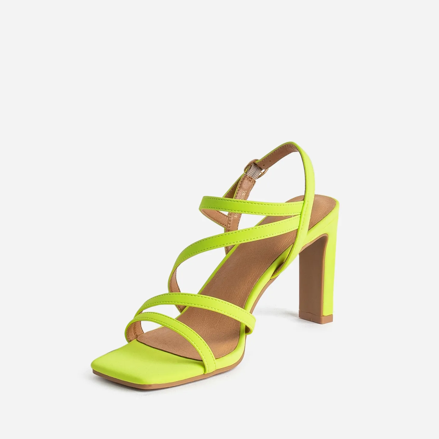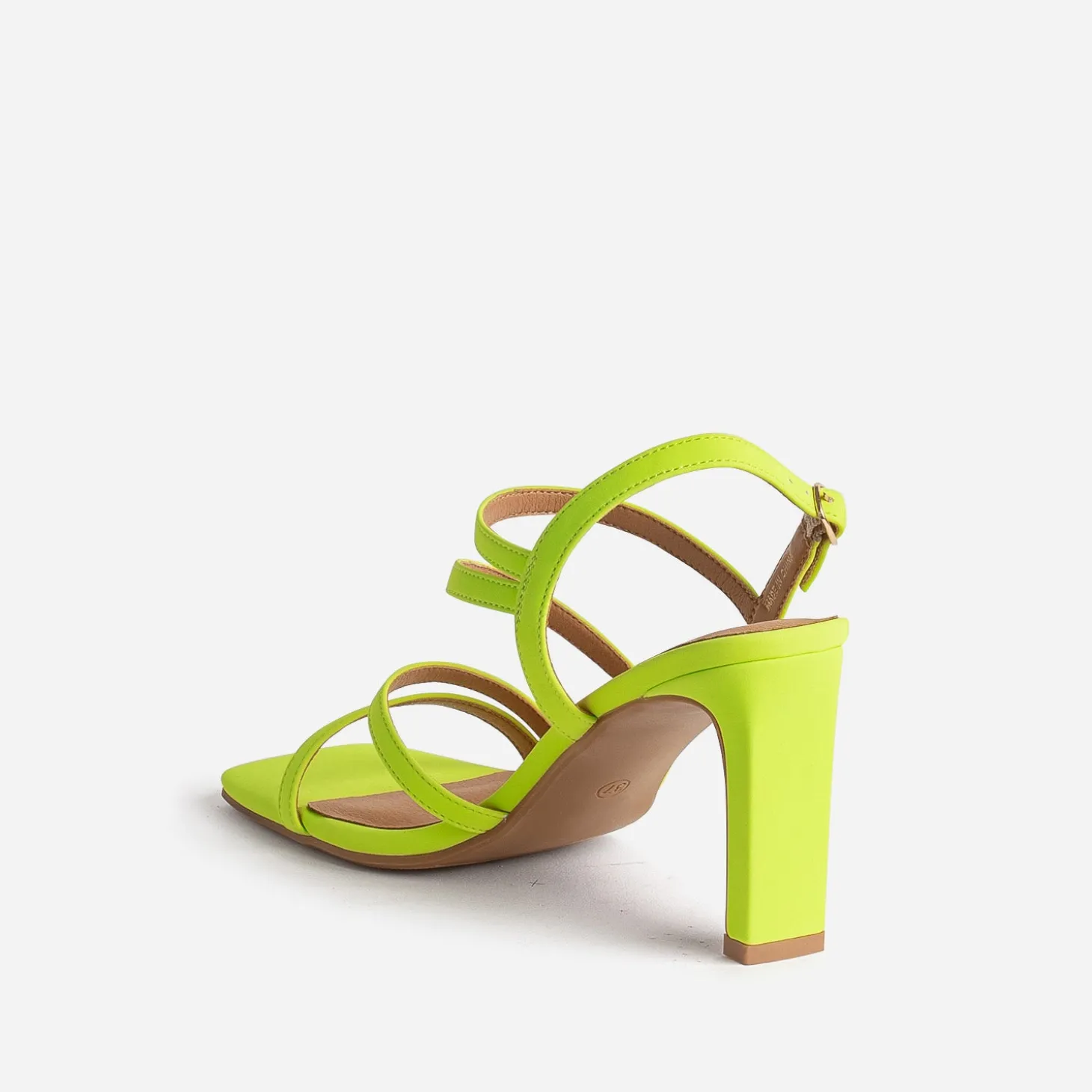 Elle a ce bout carré, ultra tendance. Elle a un joli talon de 8,5 cm qui allonge la silhouette. Elle a ce coloris lime, proche du jaune fluo, qui twiste n’importe quelle tenue d’une touche fun. Cette sandale femme, dotée de fines brides, habille le pied avec une élégance inégalée. Un modèle à oser avec une robe imprimée à fleurs colorées.