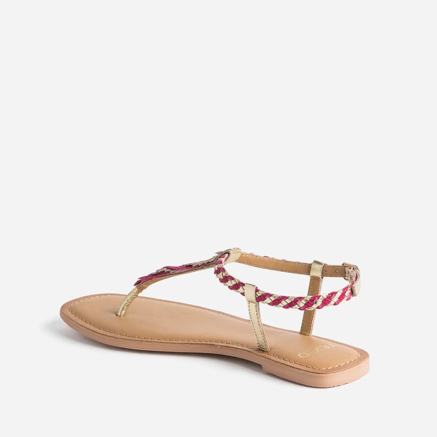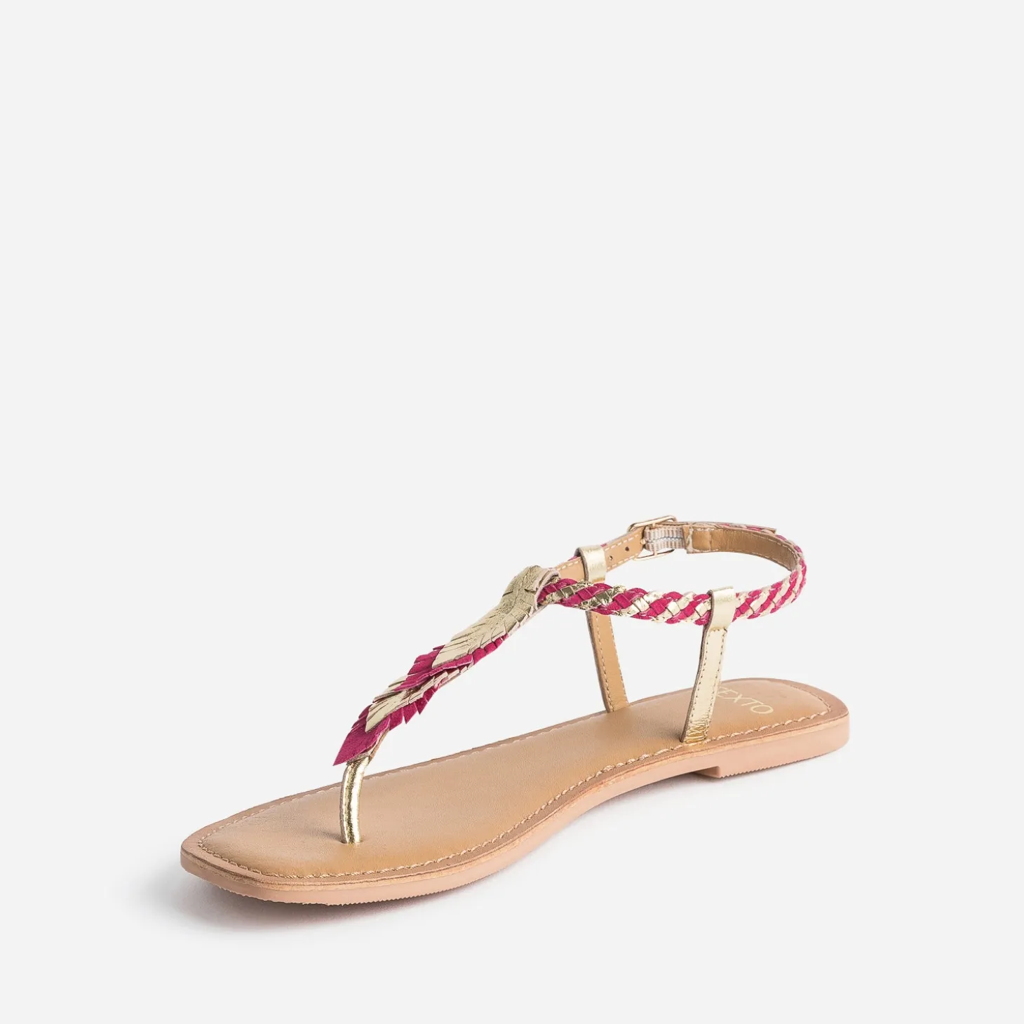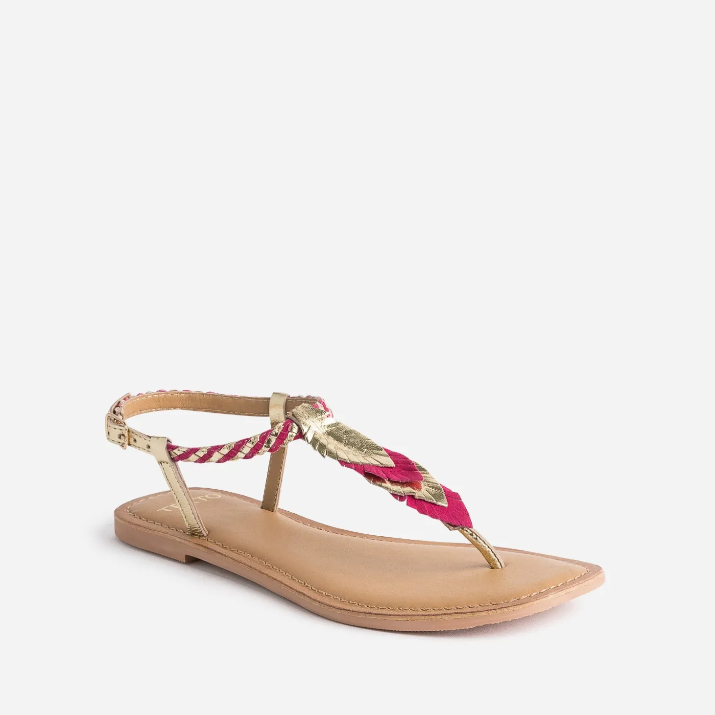 Sandale-tong TEXTO fuchsia et or en cuir à plumes