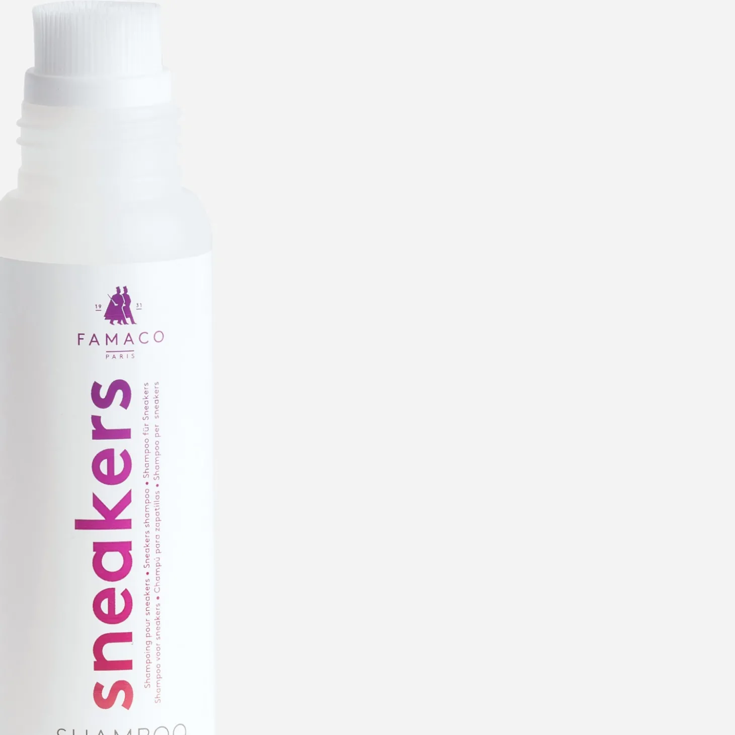 Issu de la gamme spéciale sneakers, ce shampoing est conçu pour les nettoyer en profondeur. Utilisable sur toutes les matières (cuir ou synthétique), il s’applique facilement, après dépoussiérage de la chaussure, grâce à sa brosse intégrée.
