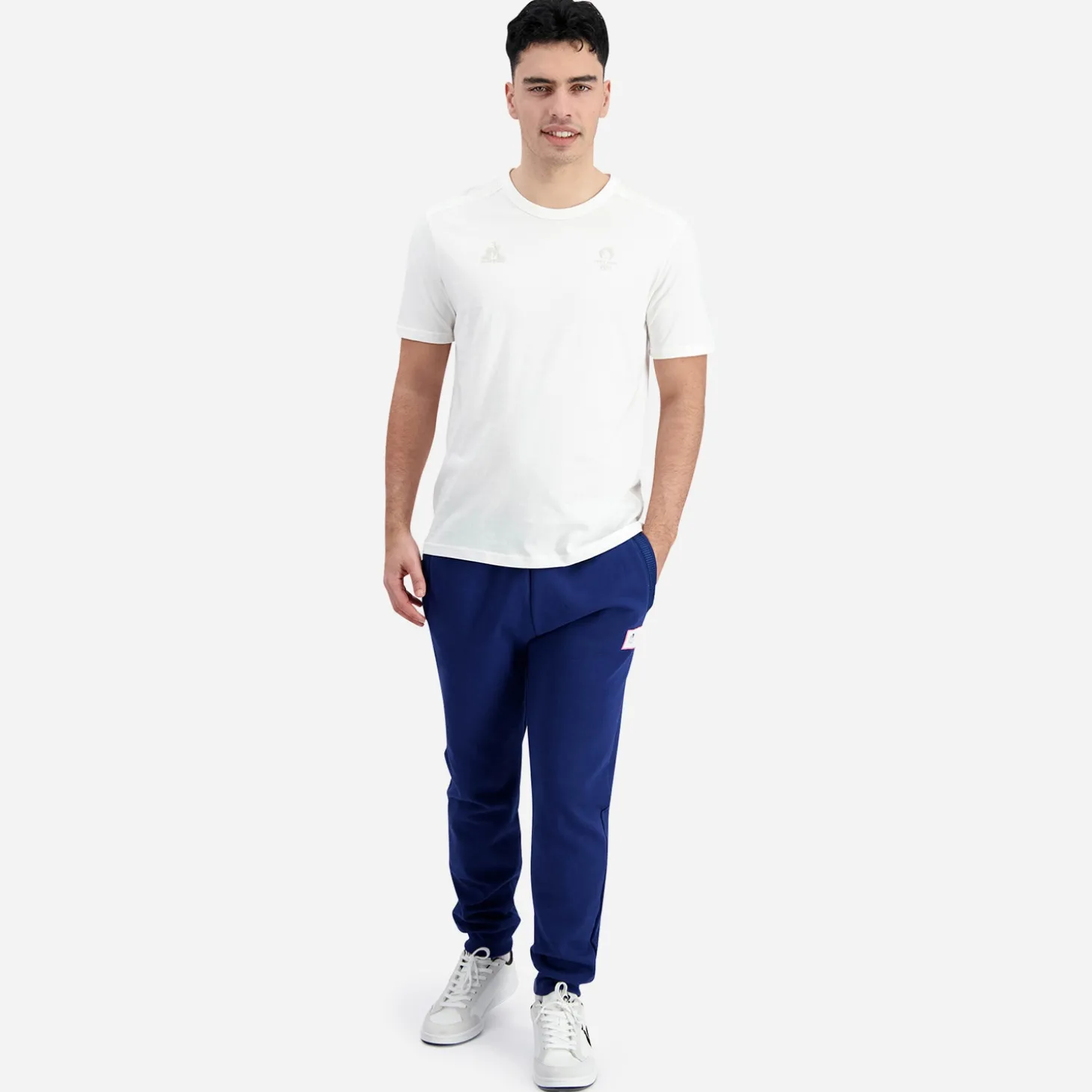 Logos PARIS 2024 et LE COQ SPORTIF sur la poitrine en technique print + encre gonflante en ton décalé.