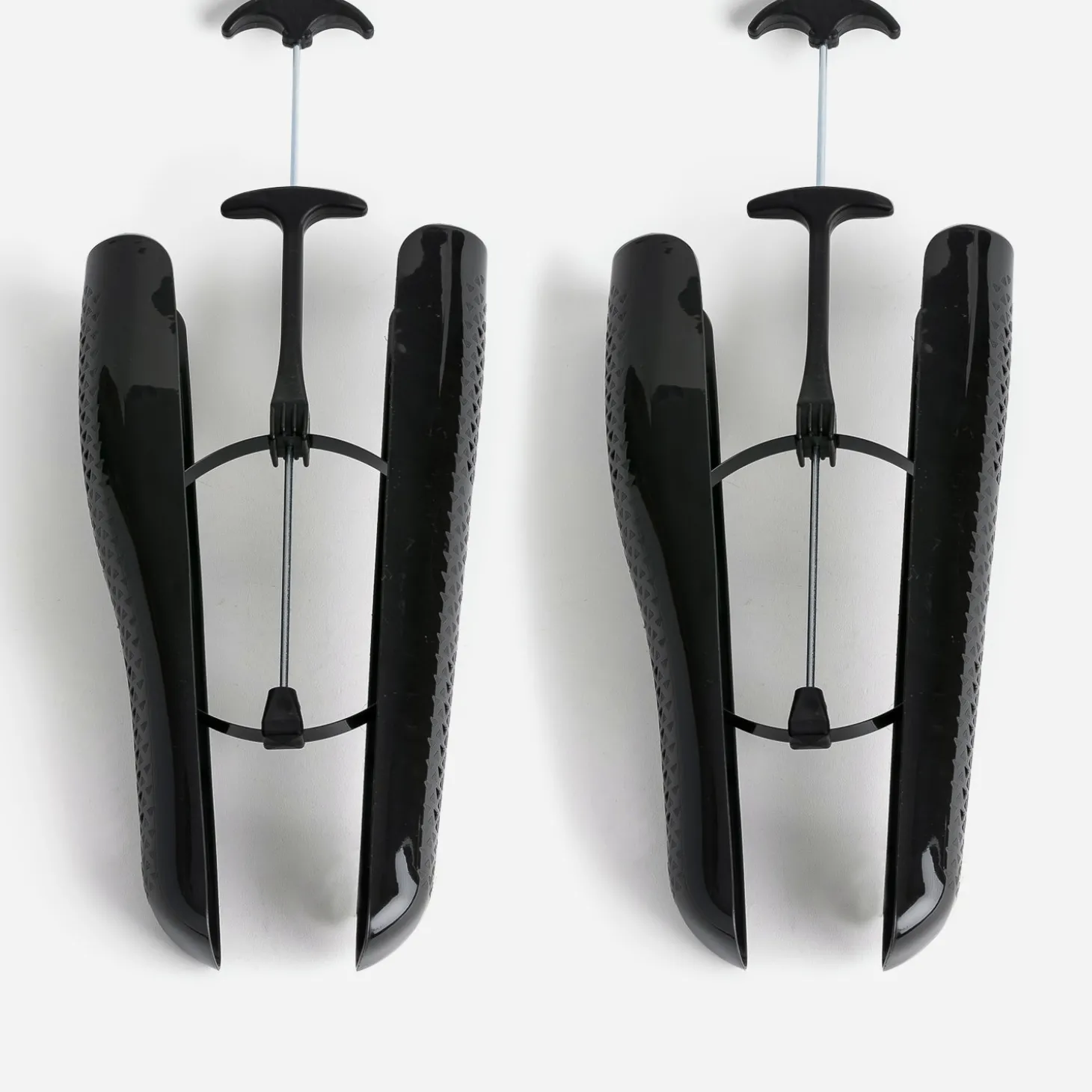 La solution pour que vos bottes conservent leur forme d’origine, saison après saison ? Des tendeurs. Actionnez la poignée pour comprimer le ressort, insérez le tendeur dans la botte, en plaçant le côté bombé côté mollet, puis relâchez. Utilisés au quotidien, ils permettent, à la tige, de maintenir sa forme en évitant la formation de plis, et de garder son aspect neuf plus longtemps, grâce à une bonne aération.