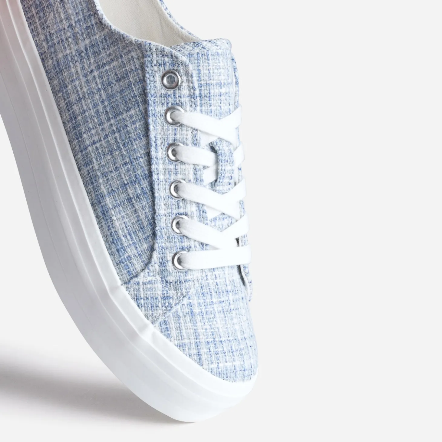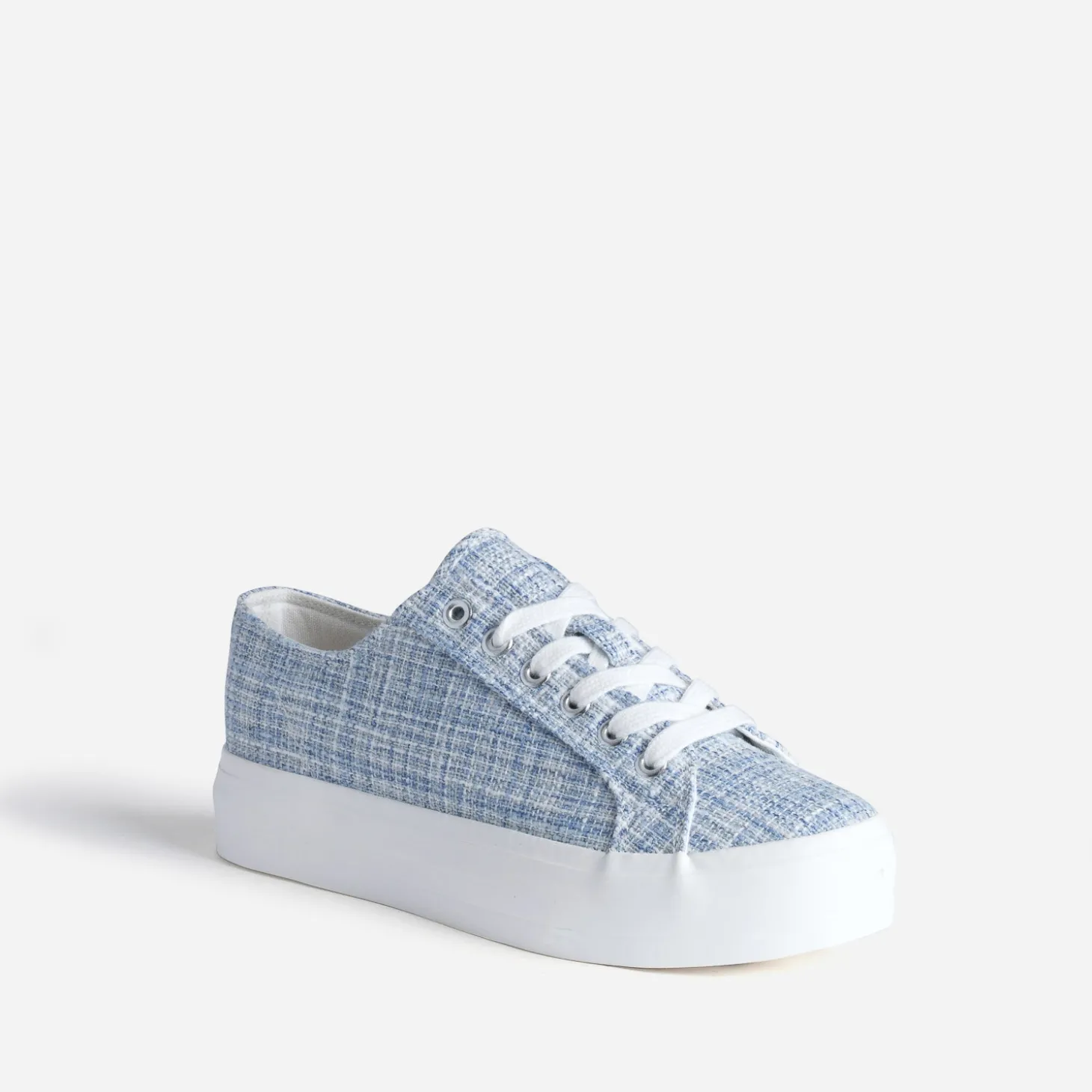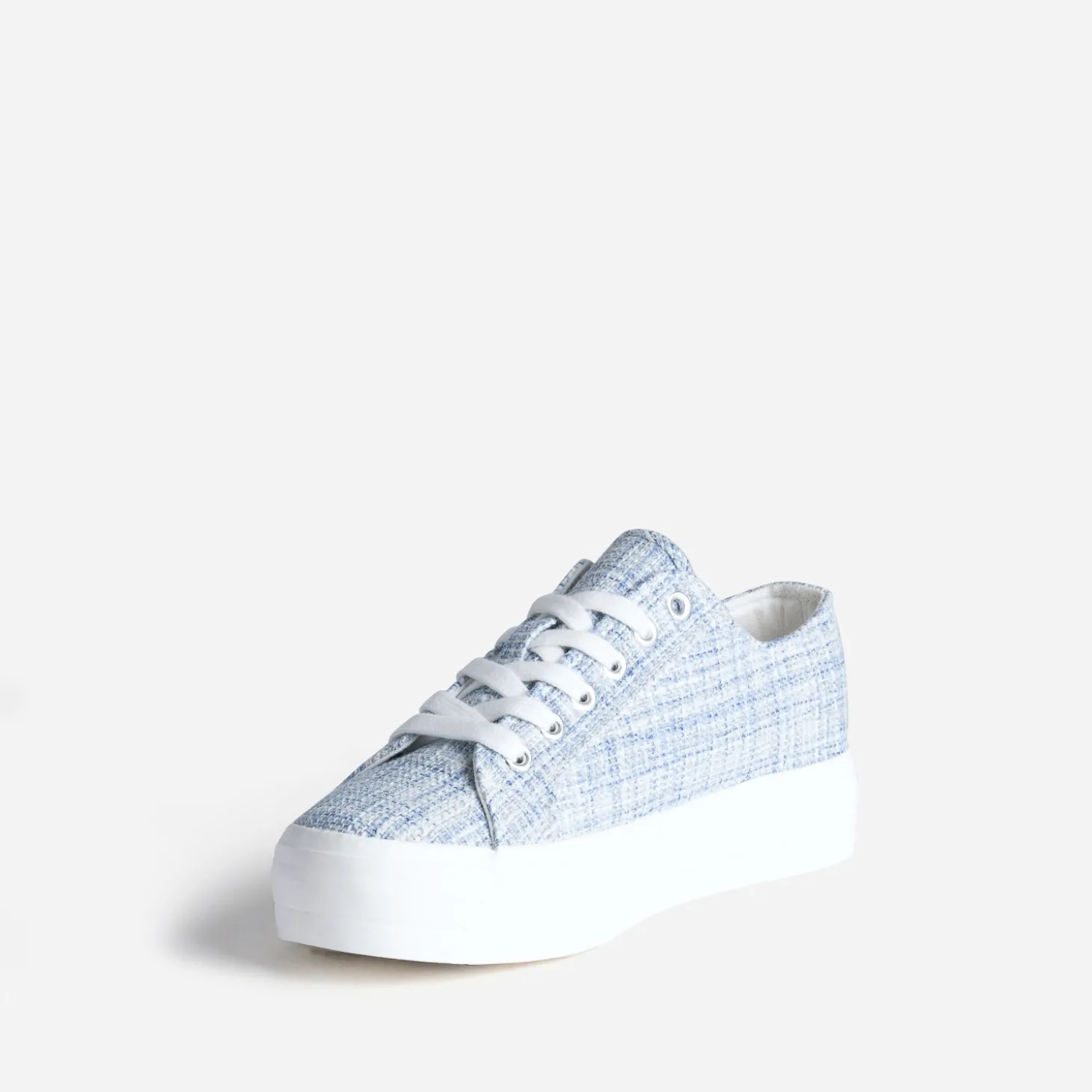 Ce bleu là, il est parfait. Inspiré du tweed, il assure des looks décontractés. La tennis femme associe toile et semelle épaisse blanche, pour s’inscrire dans la tendance du moment. Un modèle à privilégier à l’entre saison, avec un tee-shirt, un jean cropped et une veste en jean.