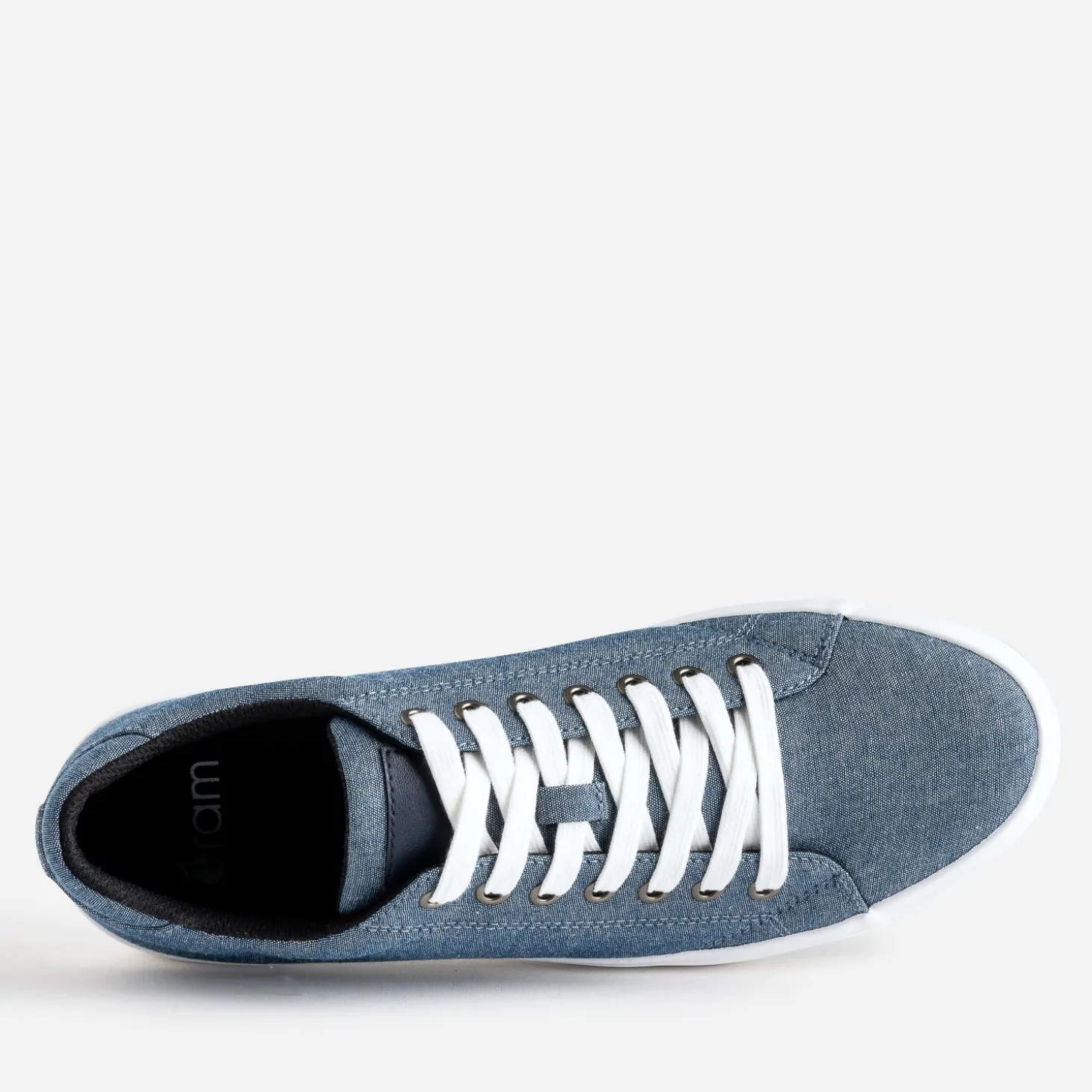 Inspiration chambray pour cette tennis en toile bleu chiné pour homme. Elle se ferme par un lacet plat blanc, en écho à la semelle. La doublure intérieure, elle, se décline en coloris noir. Les pièces en jean, chemise, pantalon, veste, sont ses meilleures alliées.
