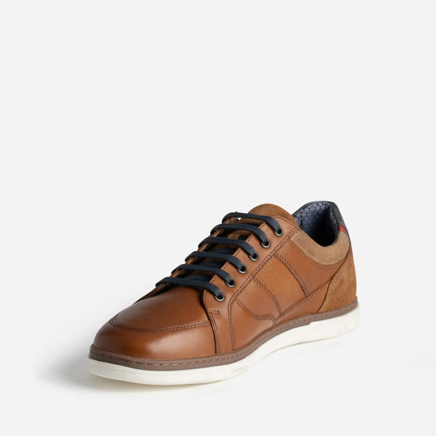 Tennis cognac cuir contrefort bleu marine