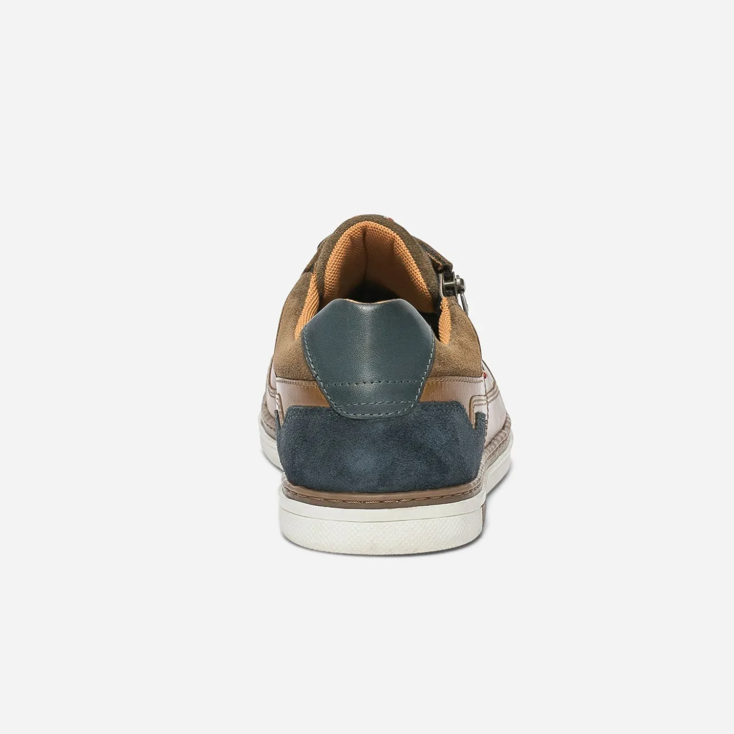 Tige en cuir, doublure textile et première synthétique, cette tennis est un best de notre collection homme. Cognac, elle se laisse twister d’empiècements ton sur ton en cuir velours, d’une touche orangée et de perforations placées. Fermée par laçage, elle présente un zip extérieur qui facilite la passage du pied. Un modèle classique et essentiel, qui vous suivra tout au long de la saison.