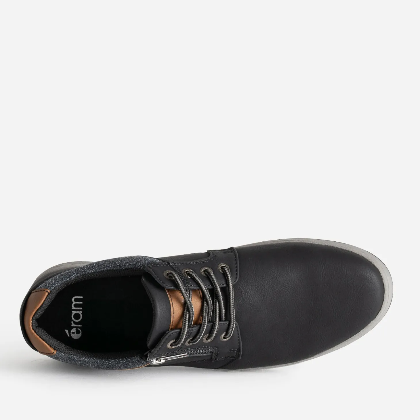 Matière synthétique souple, bordure en textile chiné, zip latéral en renfort du lacet, la tennis pour homme active son mode… confort ! Noir, gris foncé et gris clair, elle mise aussi sur les couleurs sombres pour entrer dans l’hiver. Un modèle pensé pour être porté facilement, avec tous les looks du quotidien.