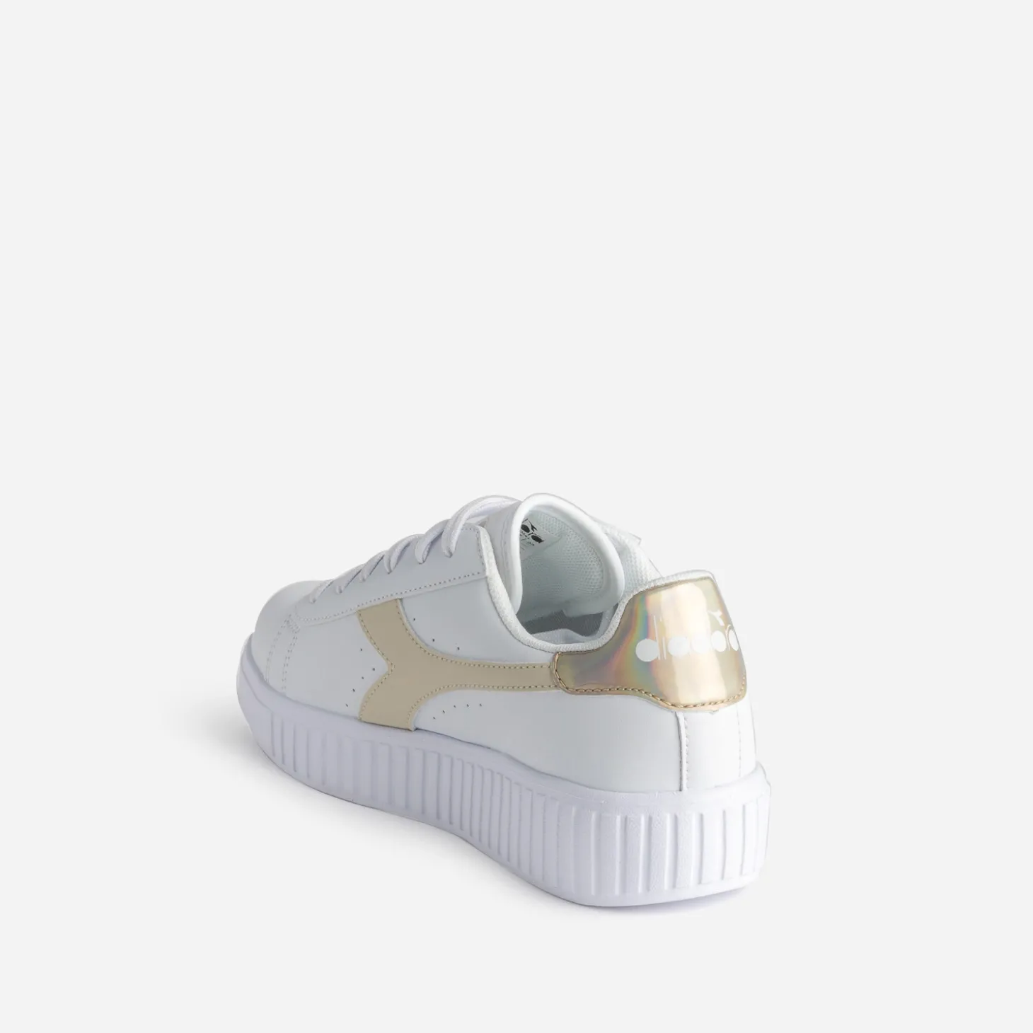 Cette tennis pour junior présente une tige en matière synthétique blanche, rythmée de perforations. Les côtés sont signés de lignes beiges mates et le contrefort s’autorise une déclinaison beige métallisée, en écho à la languette. Elle se ferme par lacets plats ton sur ton. Un modèle facile à porter au quotidien, avec un look sport ou plus branché.