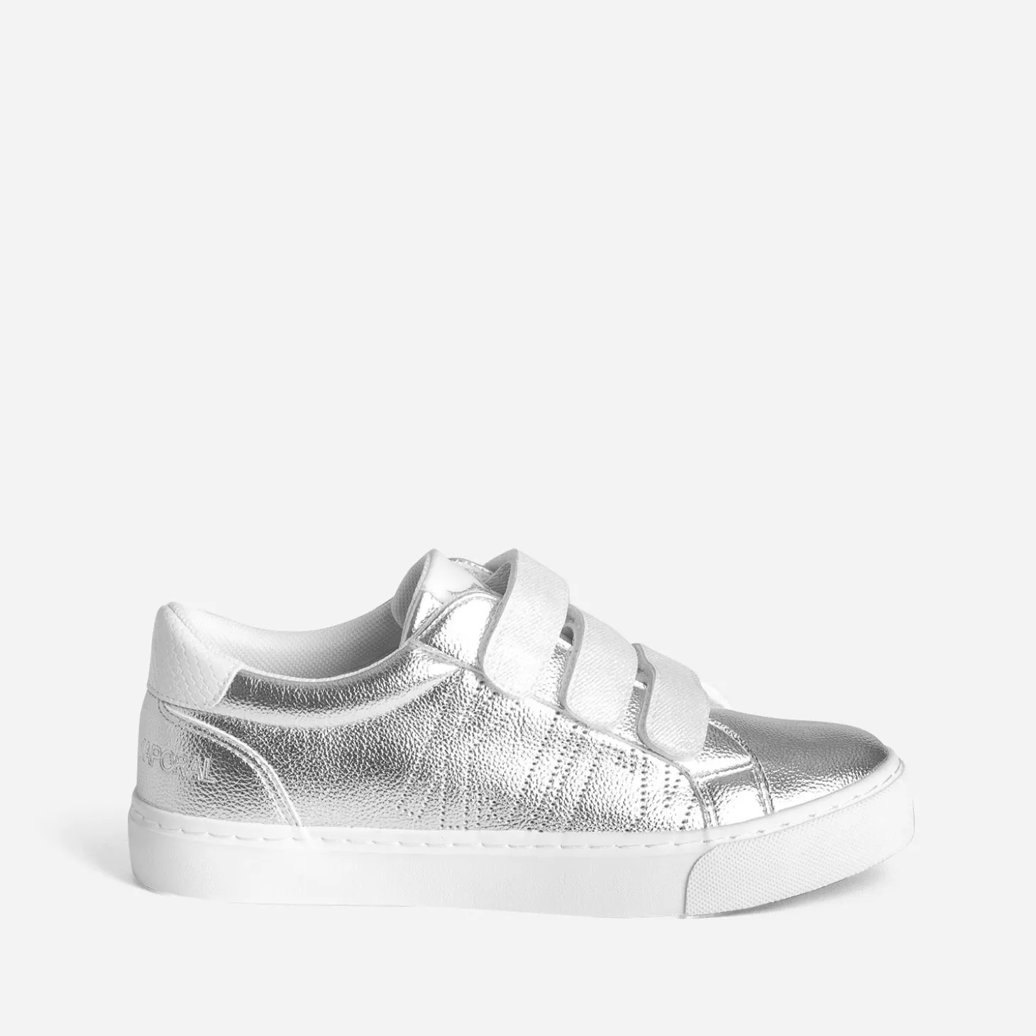 Envie d’une touche de brillance au quotidien ? Craquez pour la tennis. En matière synthétique lisse argentée, elle démarque par un maxi logo KJ, joué par perforations, sur le côté, et un contrefort blanc embossé effet python. Elle se ferme par trois scratchs en textile irisé, en écho au logo sur l’étiquette tissée, posée sur la languette. Un modèle très fashion, aussi à l’aise avec un tee-shirt et un jean, qu’avec une jupe longue plissée ou un costume dans des tons froids (bleu, vert, gris, violet).