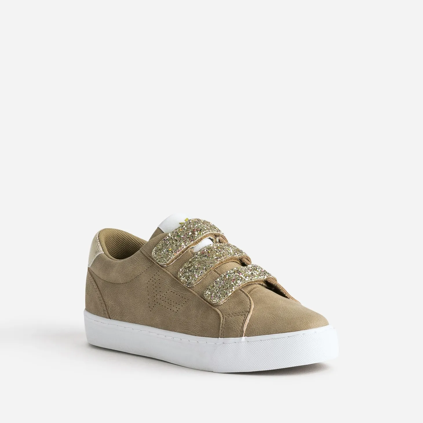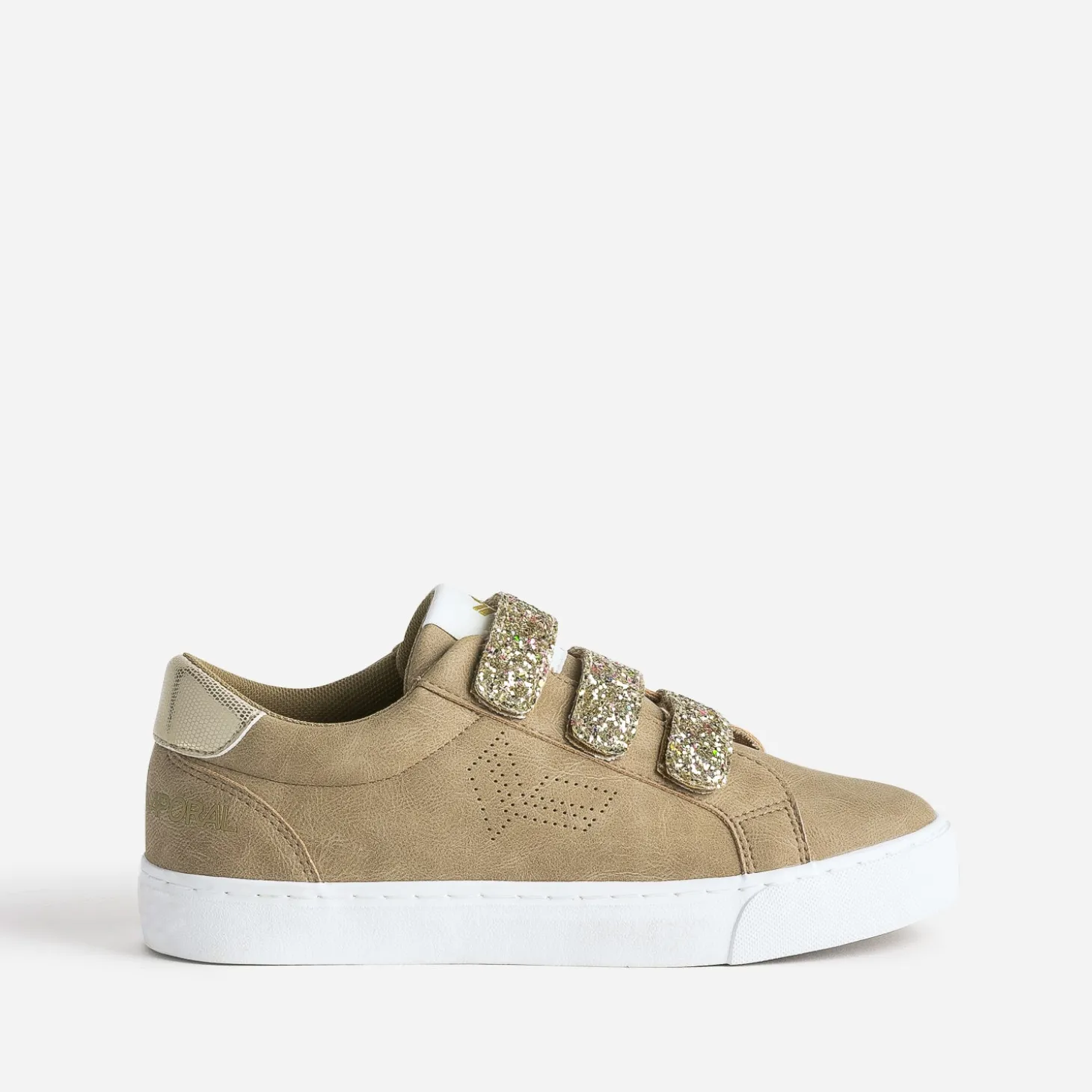Cette tennis pour femme est une création qui mixe matière synthétique et textile. Déclinée en coloris camel, elle marque son originalité par une fermeture à 3 scratchs recouverts de paillettes dorées et un contrefort à embossage et imprimé effet python assorti. La marque affiche ses logos dorés sur le côté et le contrefort. Un modèle idéal dès l’inter-saison, avec un look dans les tons bleus ou naturels.