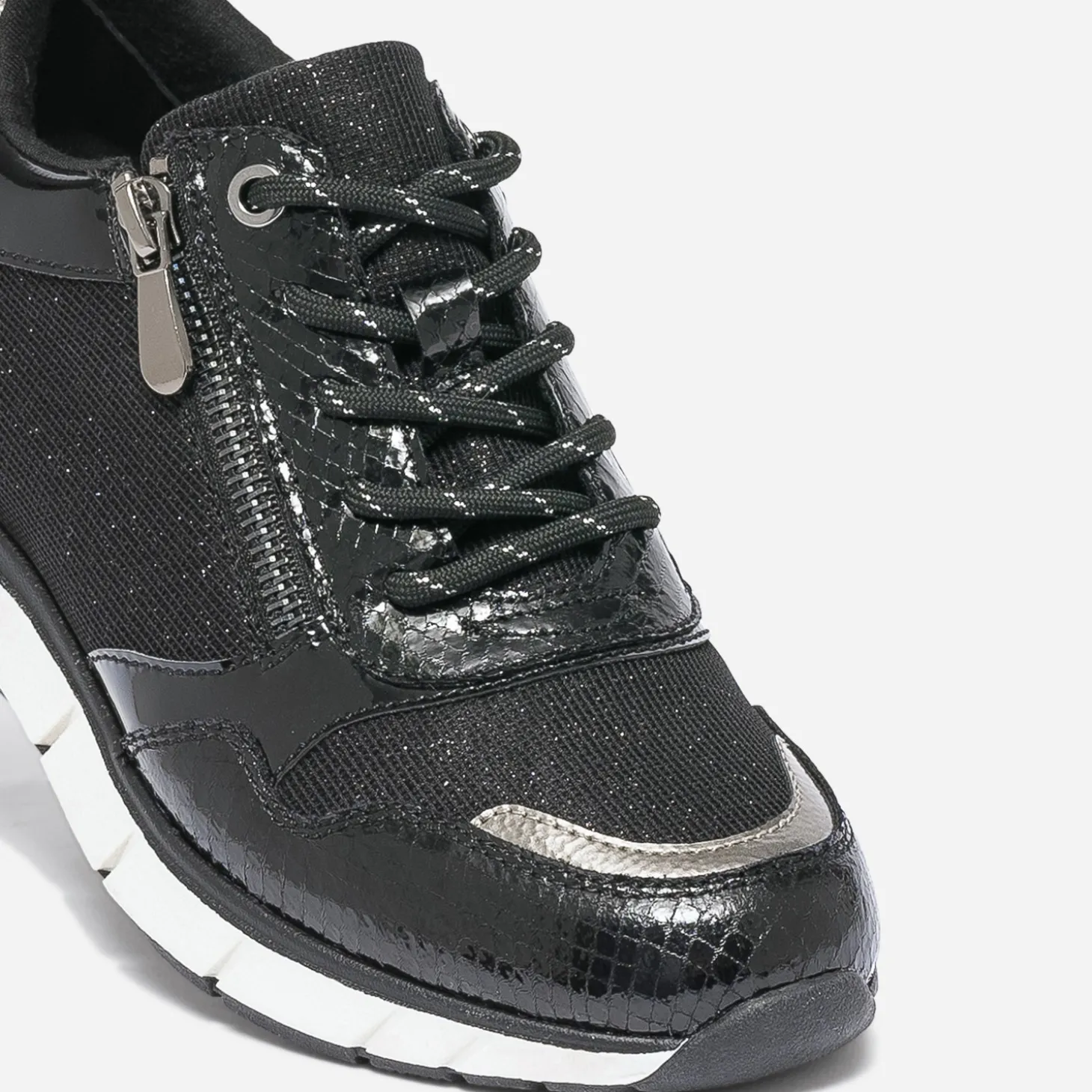 Des paillettes, du verni, du métallisé. 3 bonnes raisons de craquer pour cette tennis pour femme. Noire, elle est twistée de touches bronze sur le bout du pied et le contrefort. Un modèle casual chic, aussi à l’aise avec une tenue sport qu’avec un costume.
