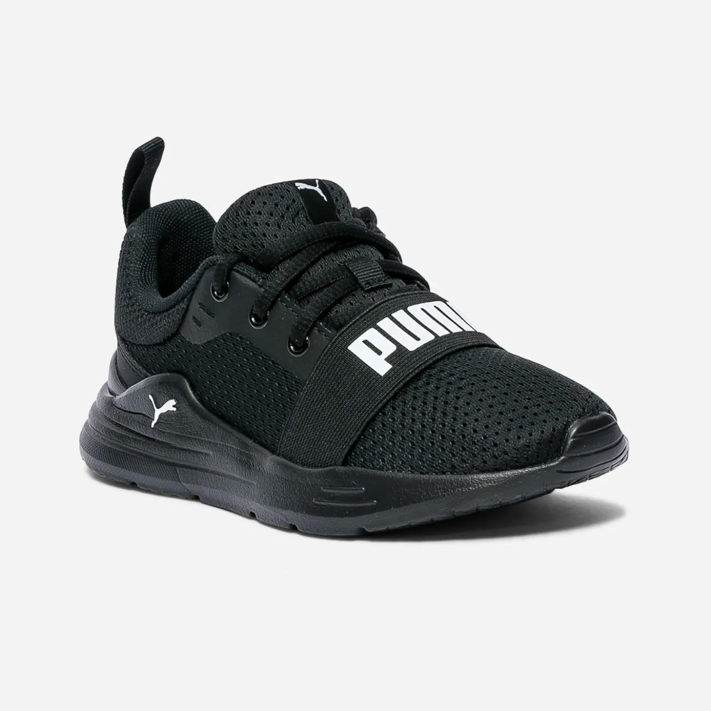 Cette tennis PUMA s’affirme par un design quasi futuriste. Confectionnée en mesh noir, elle se ferme par lacet et est décorée par un large élastique animé du logo de la marque. Un modèle ultra léger pour courir encore plus vite.