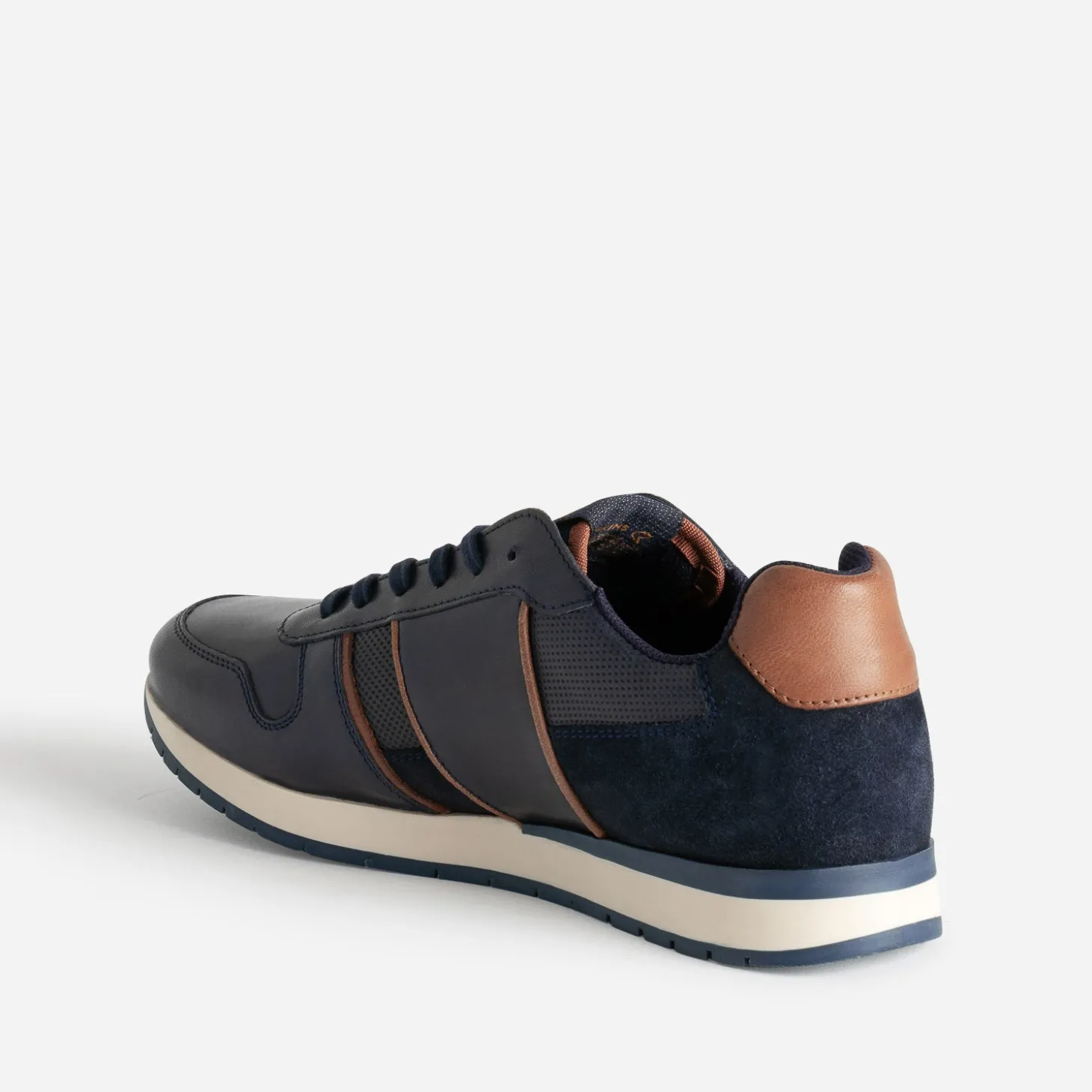Faites confiance à la tennis basse, pour s’inscrire dans la tendance. Faites confiance au bleu marine, pour s’accorder avec un maximum de couleurs et de styles. Ce modèle pour homme préconise un look décontracté, autour du bleu, du beige et du camel.