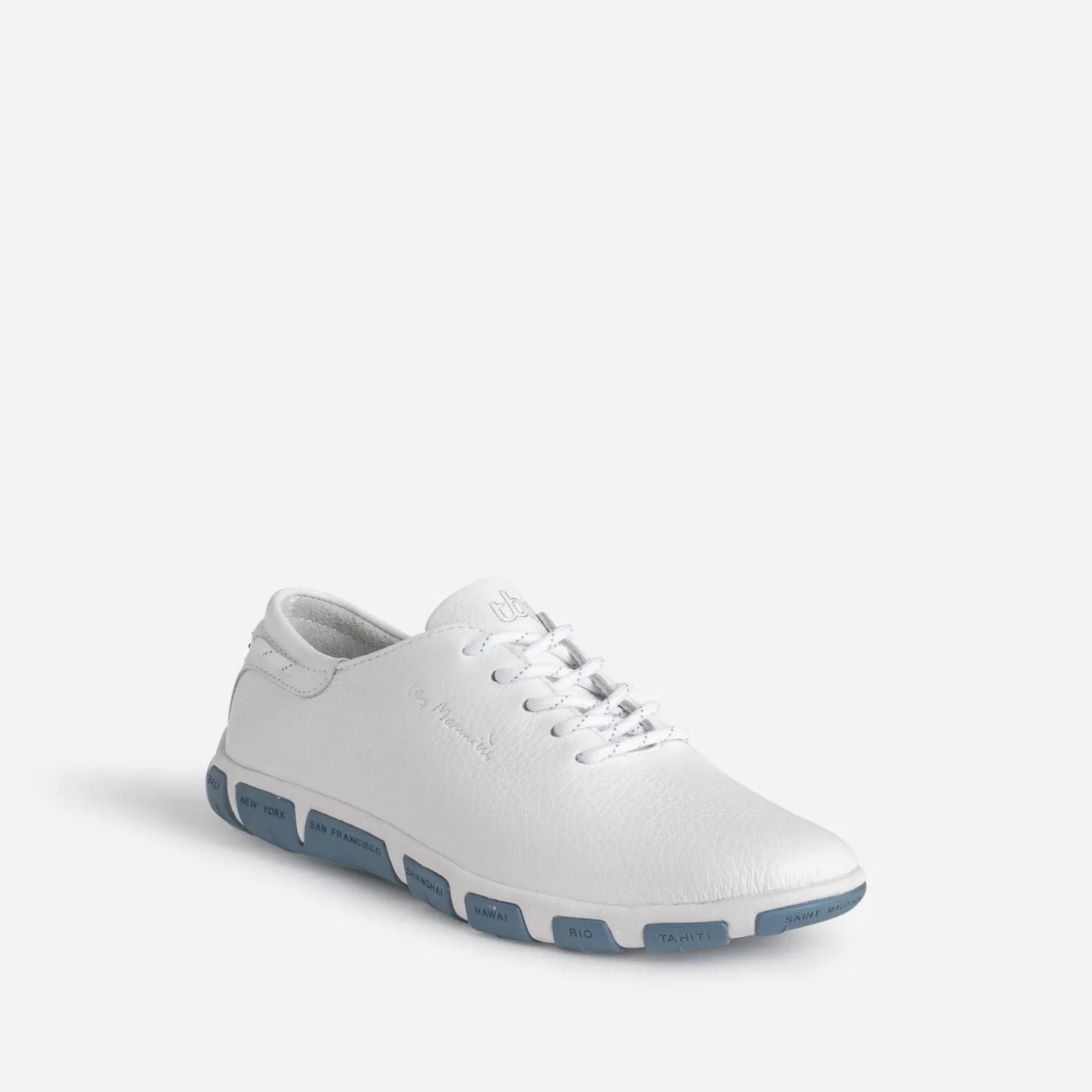 Adoptez, sans attendre, cette tennis pour femme en coloris blanc, avec lacet rond délicatement rayé et semelle bicolore. Signé ‘Les Marinières’, cet iconique de la marque conçu entièrement en cuir et non doublé, est reconnu pour sa légèreté, sa souplesse et sa résistance. New York, Hawaï, Saint Malo ou Hong Kong, voyagez le pied léger !