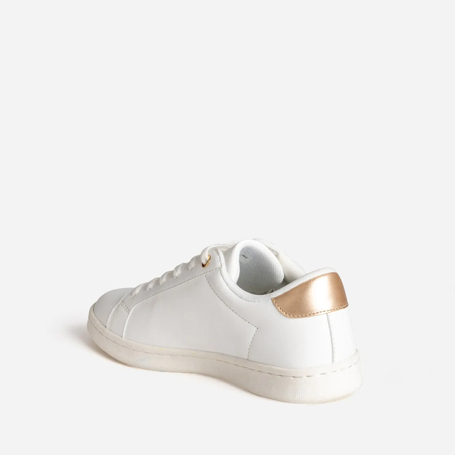 La tennis annonce l’arrivée du printemps. Comment ? Par une broderie fleurs en couleurs, posée sur le côté. En matière synthétique blanche, elle se laisse twister de touches dorées sur la languette et le contrefort. Un modèle à associer à un top jaune safran, sur une jupe midi en lin rose, avec une ceinture rouge.