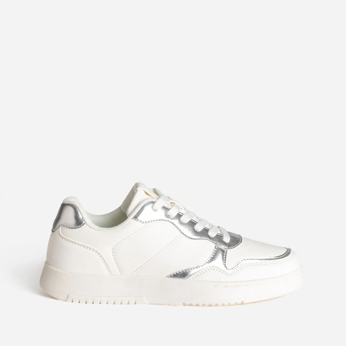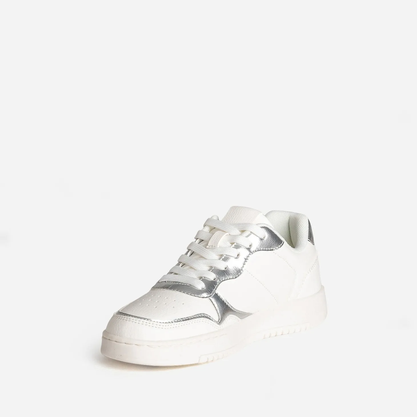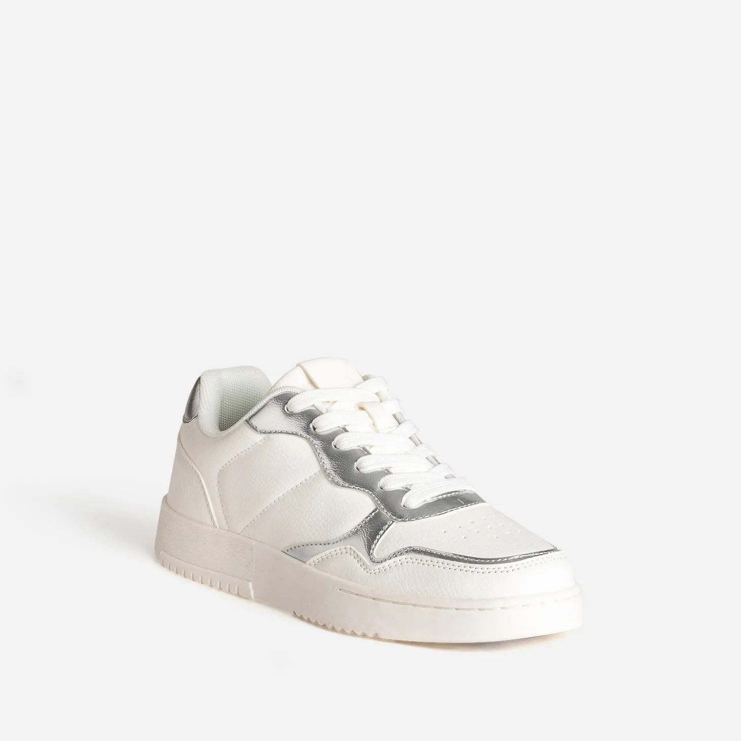 Inédite avec son duo de blanc et gris argenté, cette tennis est confectionnée en matière synthétique lisse, avec des touches métallisées. Privilégiez les tons pastels, froids, ou des camaïeux de gris, pour une tenue à tendance sporty.