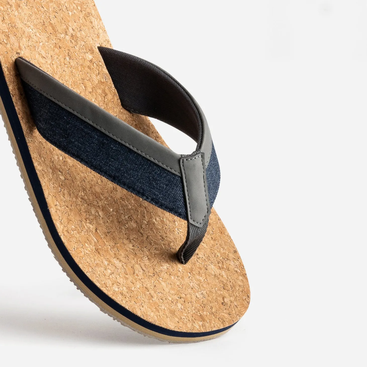 Mix matière denim brut et matière synthétique grise pour les larges brides de cette tong homme. Elle capte l’attention par une semelle imitation liège, très confortable au porté. C’est l’allié de vos sorties en bord de mer, week-ends prolongés, vacances.