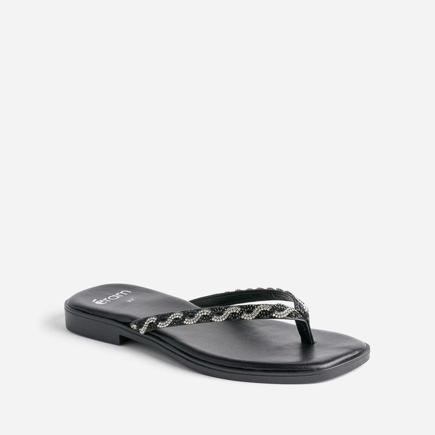 Tong TEXTO noire à brides strassées